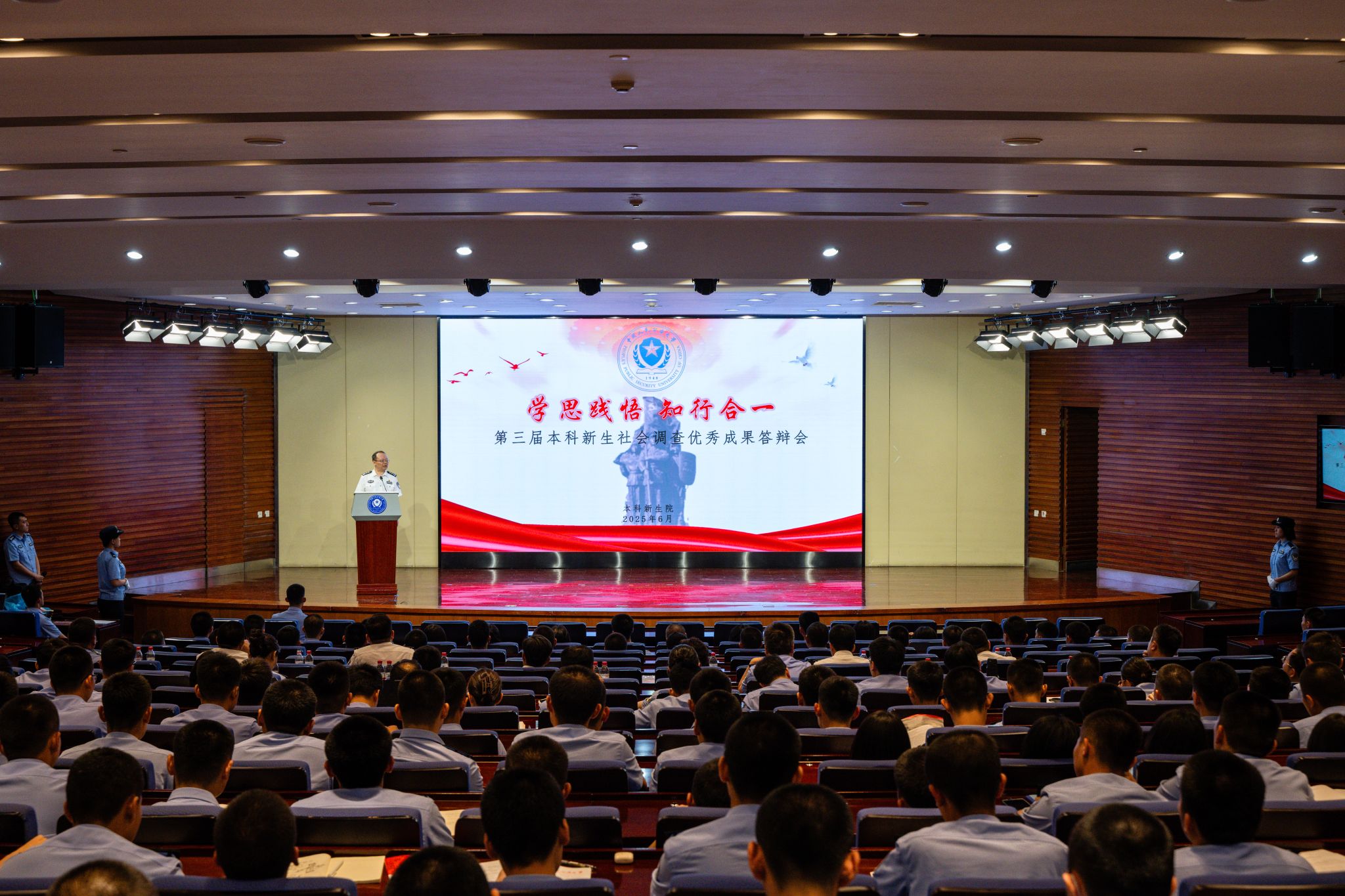 为深入贯彻落实学校高质量发展意见,激励引导学生德智体美劳全面发展,学校于近期组织开展了2025年“薪火奖章”评选活动,经学生申请、学院推荐、学校评审等环节,15名候选人脱颖而出,进入复评。5月24日下午,第四届“薪火奖章”评选复评答辩会在团河校区礼堂举行。校党委委员、副校长陈刚出席活动并为获奖选手颁奖,捐赠企业和师生代表现场观看答辩会。来自北京市公安局、北京警察学院和校属单位的专家领导担任评委。答辩现场...
