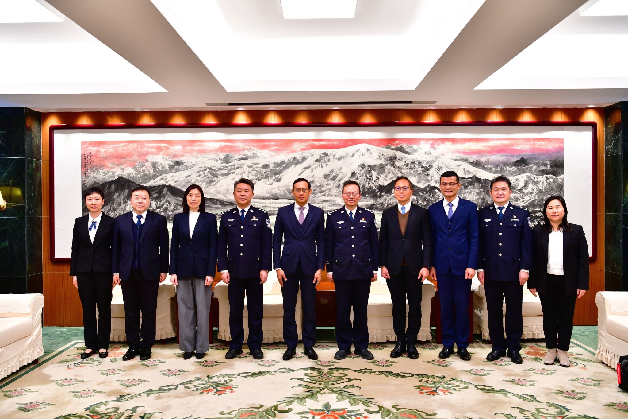 2月3日下午,香港警务处副处长陈俊燊率团一行6人来校交流访问。校党委书记、校长王轶,校党委委员、副校长刘东华会见代表团一行。双方就落实2026年度公安部与香港纪律部队研修交流团组计划,推进公安大学与香港警务处联合开展警务硕士学历教育、互派师生访学团、互换专家学者、深化警务学术研究等交流项目的务实合作进行磋商。学校围绕加入国际刑警组织全球学院联盟前期准备、合作成果等内容进行经验分享。