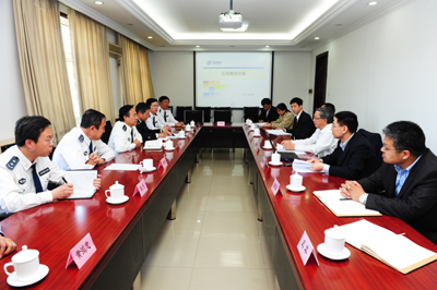 2011年5月12日下午,校党委书记、校长程琳在团河校区会见来访的航天信息股份有限公司党委书记、副董事长兼华迪计算机集团董事长伍青一行并就扩大交流与合作进行了商谈。