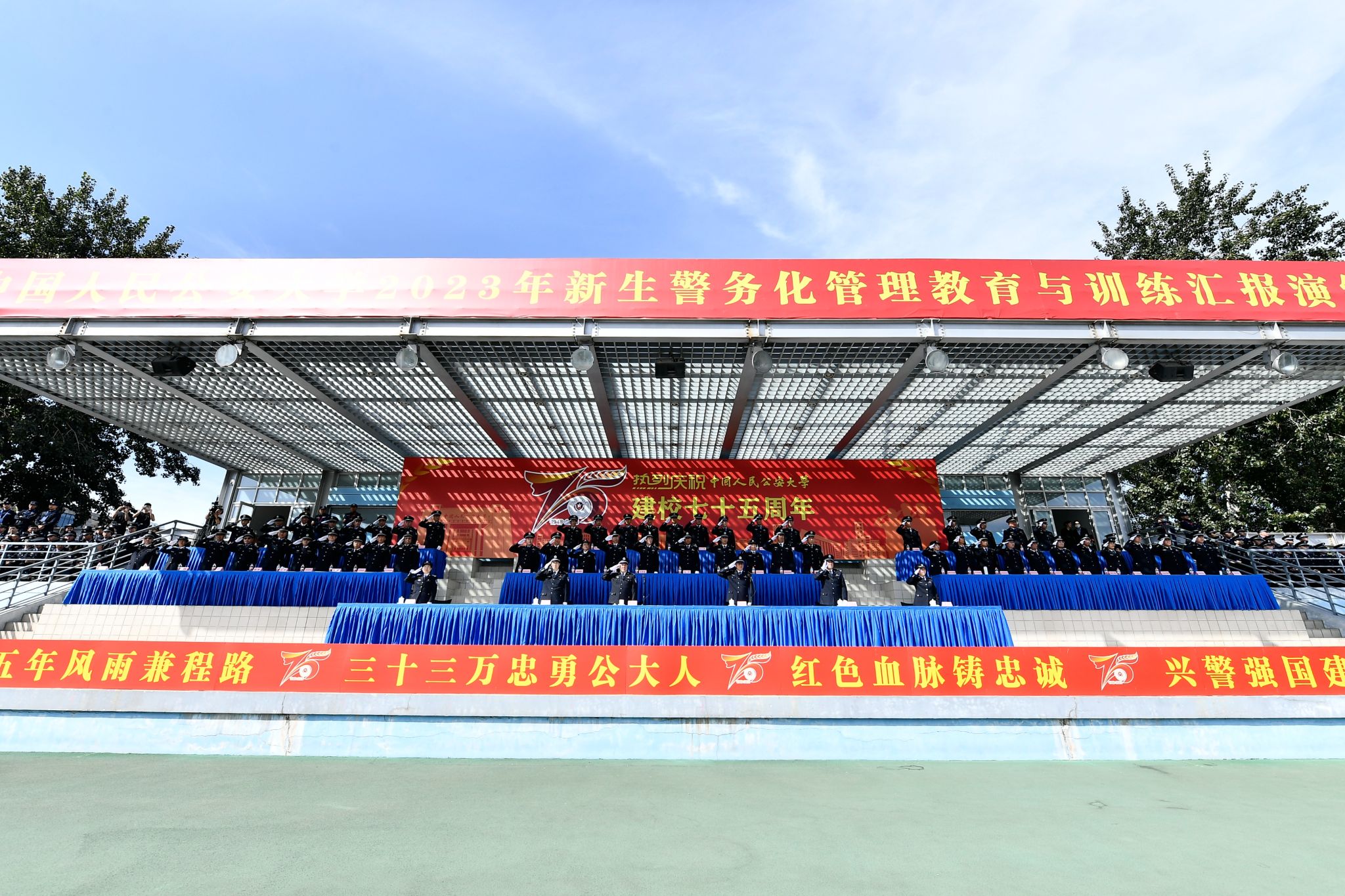 曹诗权校长在讲话中代表学校党委和全校师生员工对2023级新同学如愿迈入公安大学、光荣入列共和国预备警官队伍表示热烈祝贺。他指出,今年是公安大学建校75周年。75年来,学校始终赓续对党忠诚的红色基因,始终秉承为党育人、为国育才、为警铸剑的办学初心,始终坚持奋进创新的价值追求,始终站在国家安全战略的前沿,与人民公安事业发展同向同行。他强调,学校将深入贯彻落实公安部党委对学校发展建设提出的目标要求,当好全国公安院校的“排头兵”,当好公安高等教育事业高质量发展的“排头兵”,以“双一流”建设为牵引,加快建设“全国领军、世界一流”公安高等学府,为推进公安工作现代化提供有力的支撑。他对2023级新同学提出四点希望:一是要明白“士不可以不弘毅,任重而道远”的道理,坚持不懈用党的创新理论武装头脑、凝心铸魂,时刻牢记“公大学子”“预备警官”身份,赓续红色基因,传承忠诚血脉;二是要努力做到“博观而约取,厚积而薄发”,珍惜宝贵时光,静心读书、潜心钻研,专攻博览、注重实践,勇于创新、追求卓越;三是要学习“千磨万击还坚劲,任尔东西南北风”的境界,始终对标人民警察的职业标准,保持练出来的“精气神”,主动走出“舒适区”,学会“自找苦吃”,磨炼顽强意志,练就过硬本领;四是要领悟“君子慎独,修己以安人”的内涵,坚持更高标准、更严要求的主基调,深刻理解从严治校的内涵,自觉遵规守纪,做到“慎独慎微”,要努力向先进学习、向榜样靠拢,时刻保持争先创优的劲头。