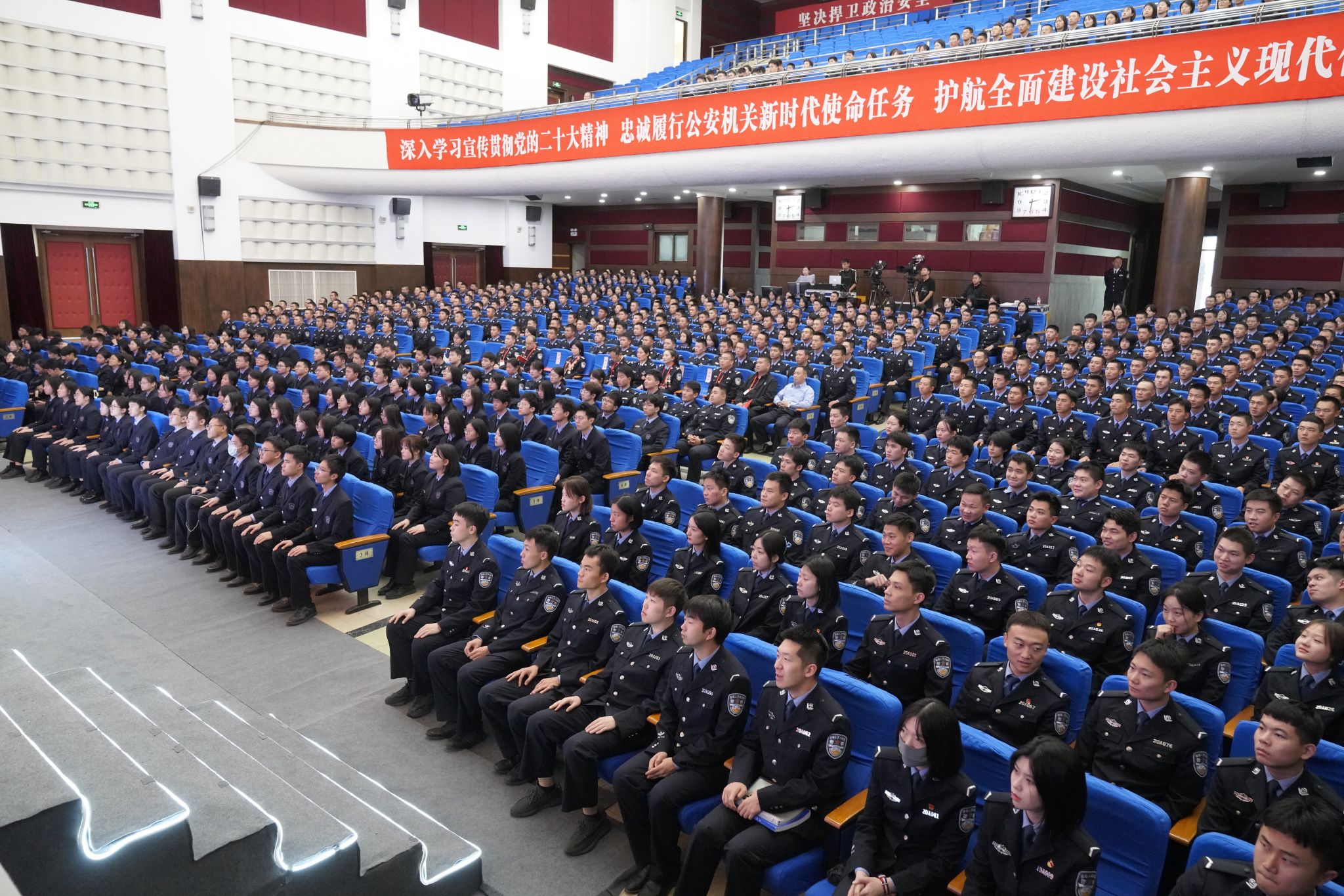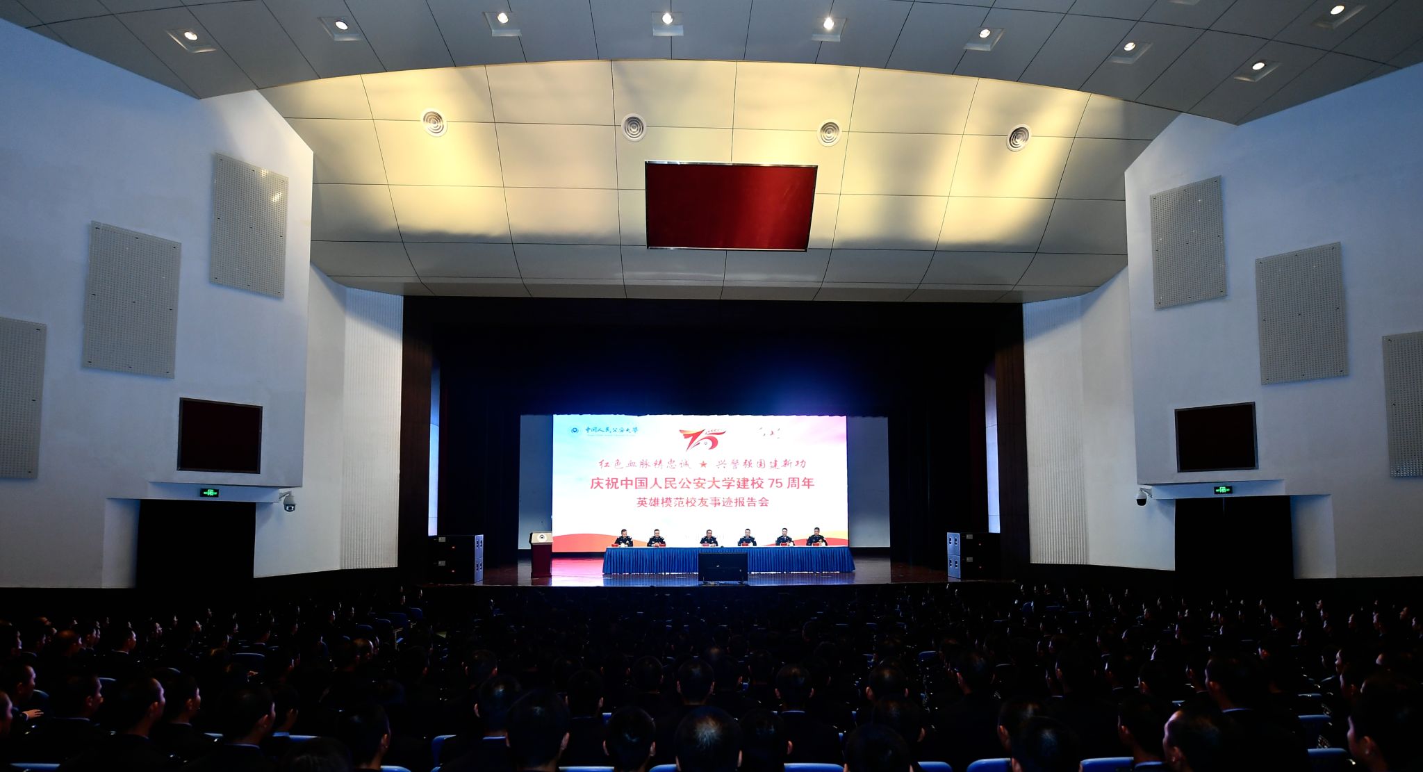 为全面深入学习贯彻习近平总书记给学校在读公安英烈子女的重要回信精神,进一步激励全校师生以英雄模范校友为榜样,忠诚履职担当,努力成长成才,矢志不渝做党和人民的忠诚卫士,2023年10月11日下午,学校召开“红色血脉铸忠诚·兴警强国建新功”庆祝建校75周年英雄模范校友先进事迹报告会。