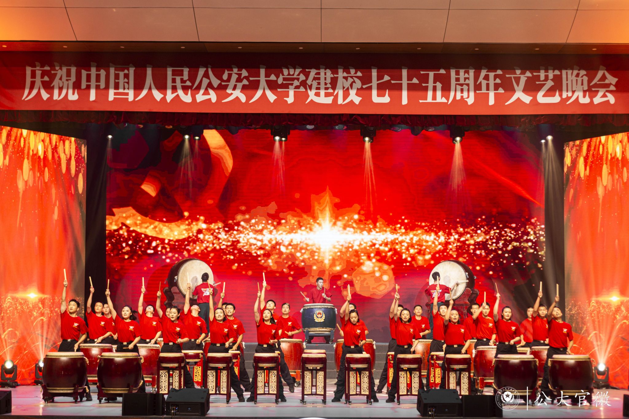 学生艺术团鼓乐团的《战鼓齐鸣》以国家级非物质文化遗产绛州大鼓慷慨激昂的鼓点拉开晚会序幕,渲染了新时代公大人激扬奋进的精神面貌。著名公安诗人艾明波专门为公安大学建校七十五周年创作了抒情长诗《续写荣光》,朗诵者们倾情诵读,将公安大学七十五年来的坚韧奋斗和荣耀历程浓缩成一段动人的诗篇。涉外警务学院、法学院学生和公安部幼儿园的小朋友们带来的舞蹈《你好,公大》展现了新时代公大人的风采,呈现欢快喜庆的校庆氛围。学生艺术团话剧团、国家安全学院学生带来的话剧《初心》讲述了1949年初,华北公安干部学校刚刚迁进北平时,学员们参与反敌特斗争的一段动人往事,展现了老一辈公大人为新中国公安事业舍生忘死、奉献青春乃至生命的英雄气概。学生艺术团合唱团、公安管理学院、国家安全学院学生带来的歌曲《如愿》以悠扬动听的合唱展现了新时代平安盛世的背后,有人民警察的牺牲和奉献。由交通管理学院教师丁立民、退休教师陈小明演唱的歌曲《永远跟党走》以铮铮誓言向党表达了无限忠诚。学校武术队、学生艺术团民乐团带来的器乐、武术表演《九州同》体现了一代代青年学子在公大接受淬炼、增长才干,成长为德智体美劳全面发展的公安事业优秀建设者和可靠接班人。学生艺术团舞蹈团表演的舞蹈《是母亲是女儿》展现了新时代公安民警舍小家、为大家,用辛勤汗水乃至宝贵生命为维护国家安全和社会稳定,守护人民的幸福和安宁牺牲奉献的故事。来自深圳市公安局的2003届校友郭峻凇演唱的原创歌曲《同学,你好》以激情四溢的演绎、温馨感人的表达,传达了对母校和同学们的深情厚意。情景朗诵《向公大报告》以时间为线索,还原了kaiyun官网学子参与国家重大活动安保增援和志愿服务工作的情景,向观众展现了新时代公大学子的家国情怀和使命担当。校学生艺术团舞蹈团、校特警队、犯罪学学院学生带来特警表演《铸警明天》展现了kaiyun官网学子坚定理想信念、苦练报国为民过硬本领的场景。退休教师舞蹈团与涉外警务学院、法学院学生共同表演的舞蹈《追寻》展现了公大精神代代相承。晚会的压轴演出是由著名女高音歌唱家、中央歌剧院副院长么红和著名青年美声歌唱家、中国歌剧舞剧院男高音歌唱家张英席倾情演唱的歌曲《领航》,歌曲如同一曲激昂的乐章,引领着新时代公大人砥砺奋进。
