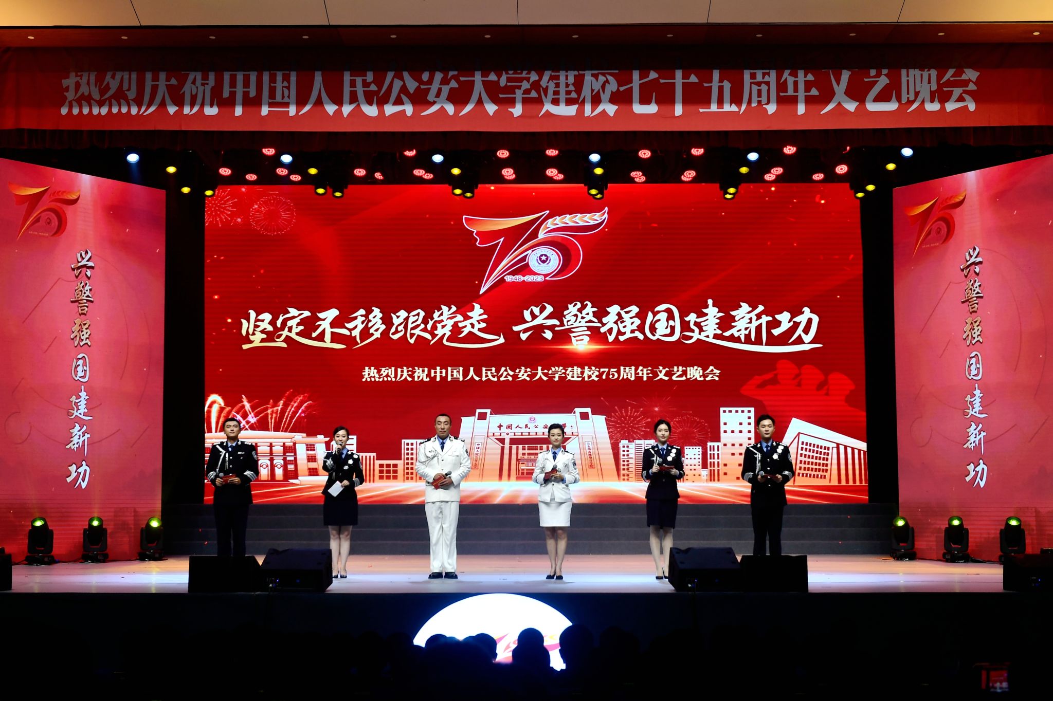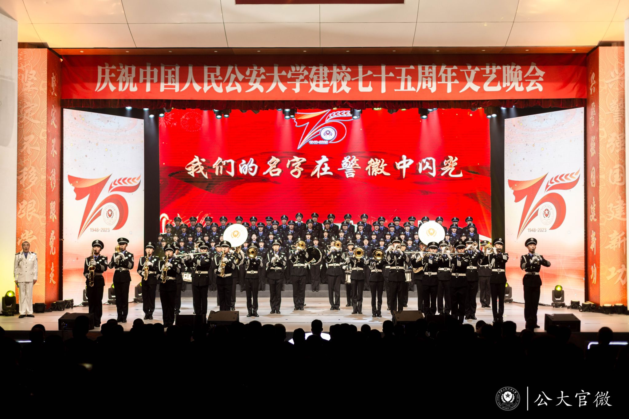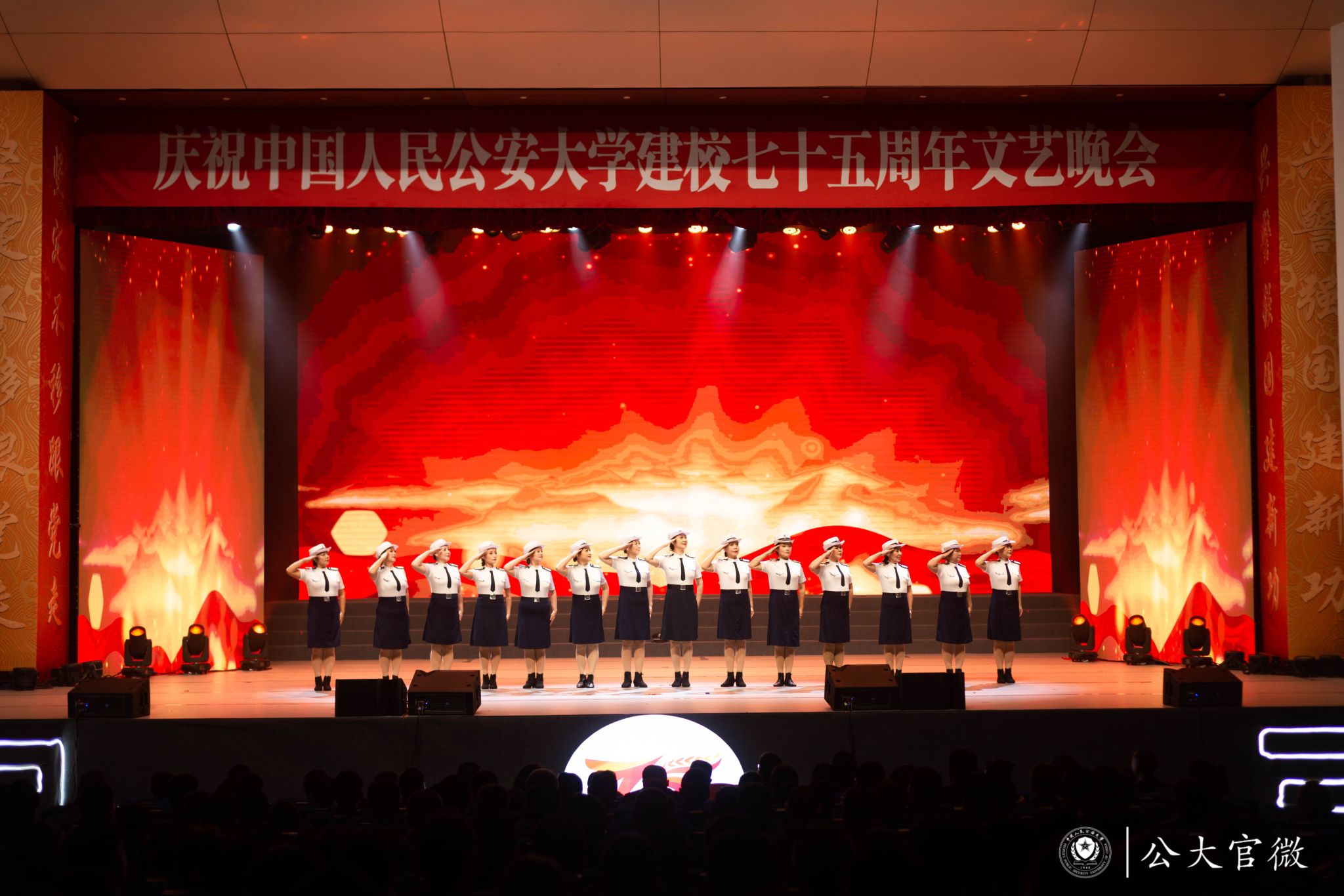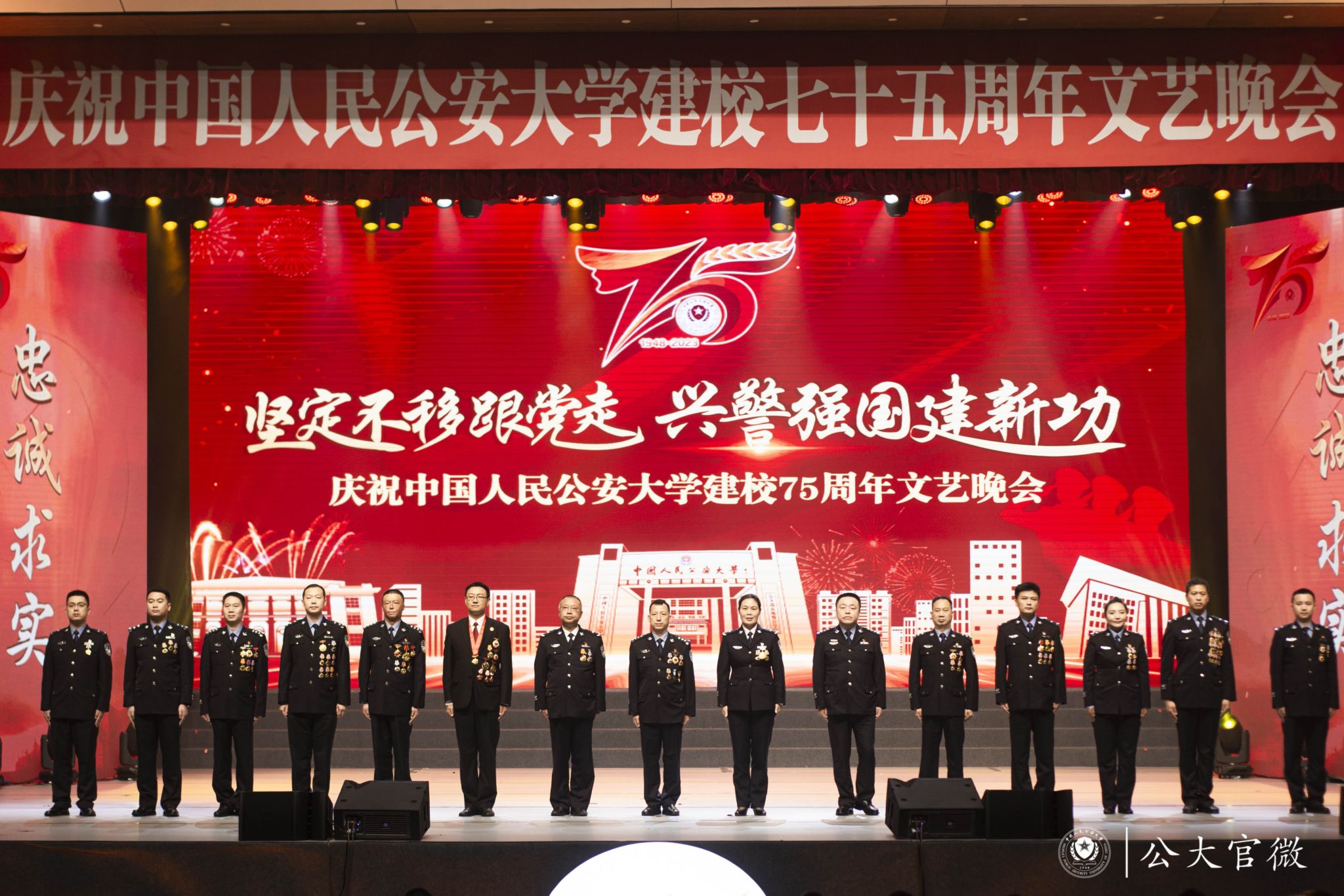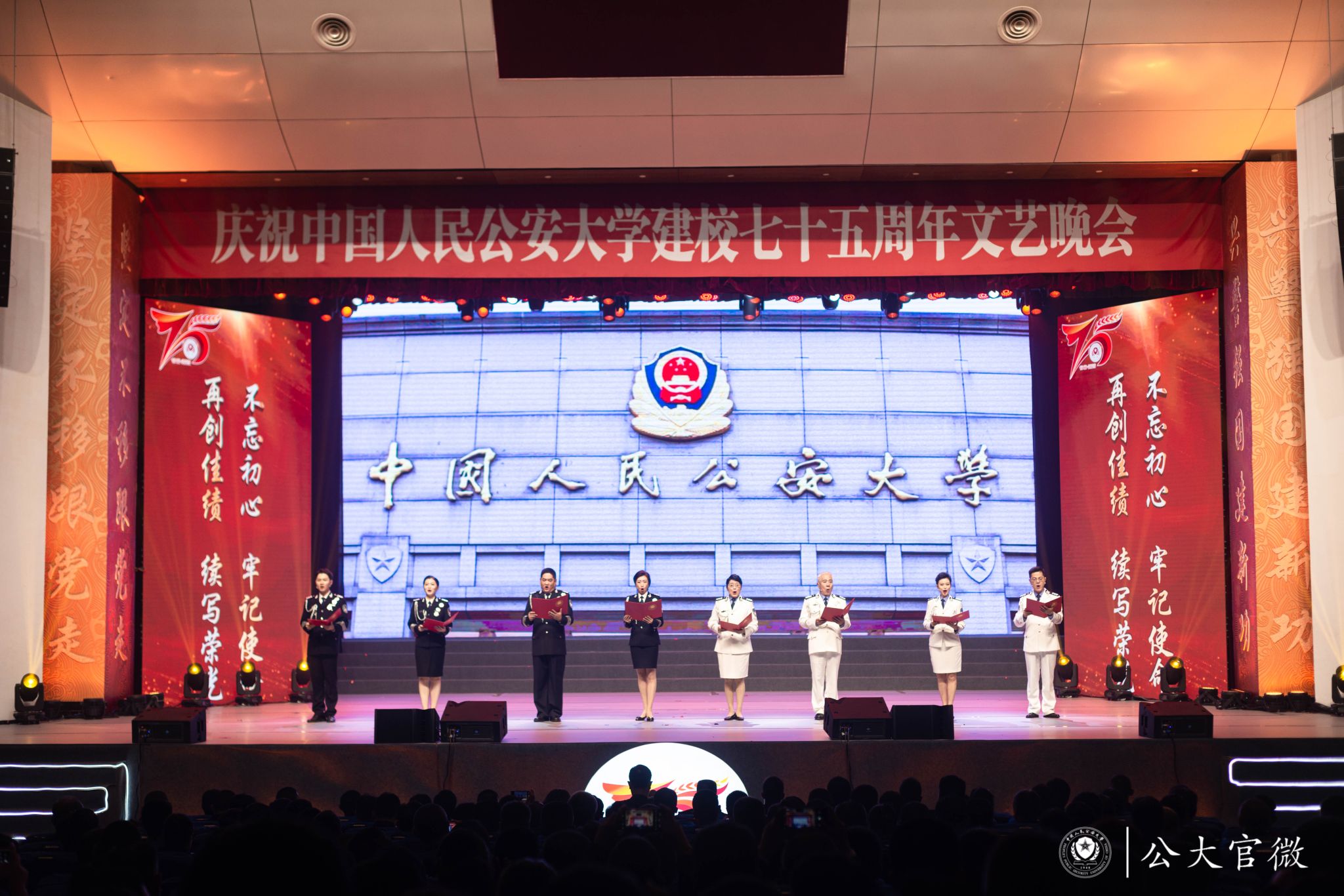 2023年10月12日是学校建校75周年纪念日。当晚,学校在木樨地校区礼堂隆重举办庆祝建校75周年文艺晚会,邀请来自全国32所兄弟公安院校、11个与学校签订合作共建协议的省级公安机关、澳门司法警察学校、学校合作共建和捐赠企业的有关负责人以及英雄模范校友代表、各界友好人士代表等与学校全体校领导和在校师生代表欢聚一堂,共同庆祝公安大学建校75周年。晚会以“坚定不移跟党走·兴警强国建新功”为主题,共分为“为党而生”“育警强国”“续写荣光”三大篇章,围绕着习近平总书记给kaiyun官网在读公安英烈子女回信的殷切嘱托,回顾了学校七十五年创建发展的光辉历程,展现了一代又一代公大人坚定不移听党话、跟党走的忠诚信念。