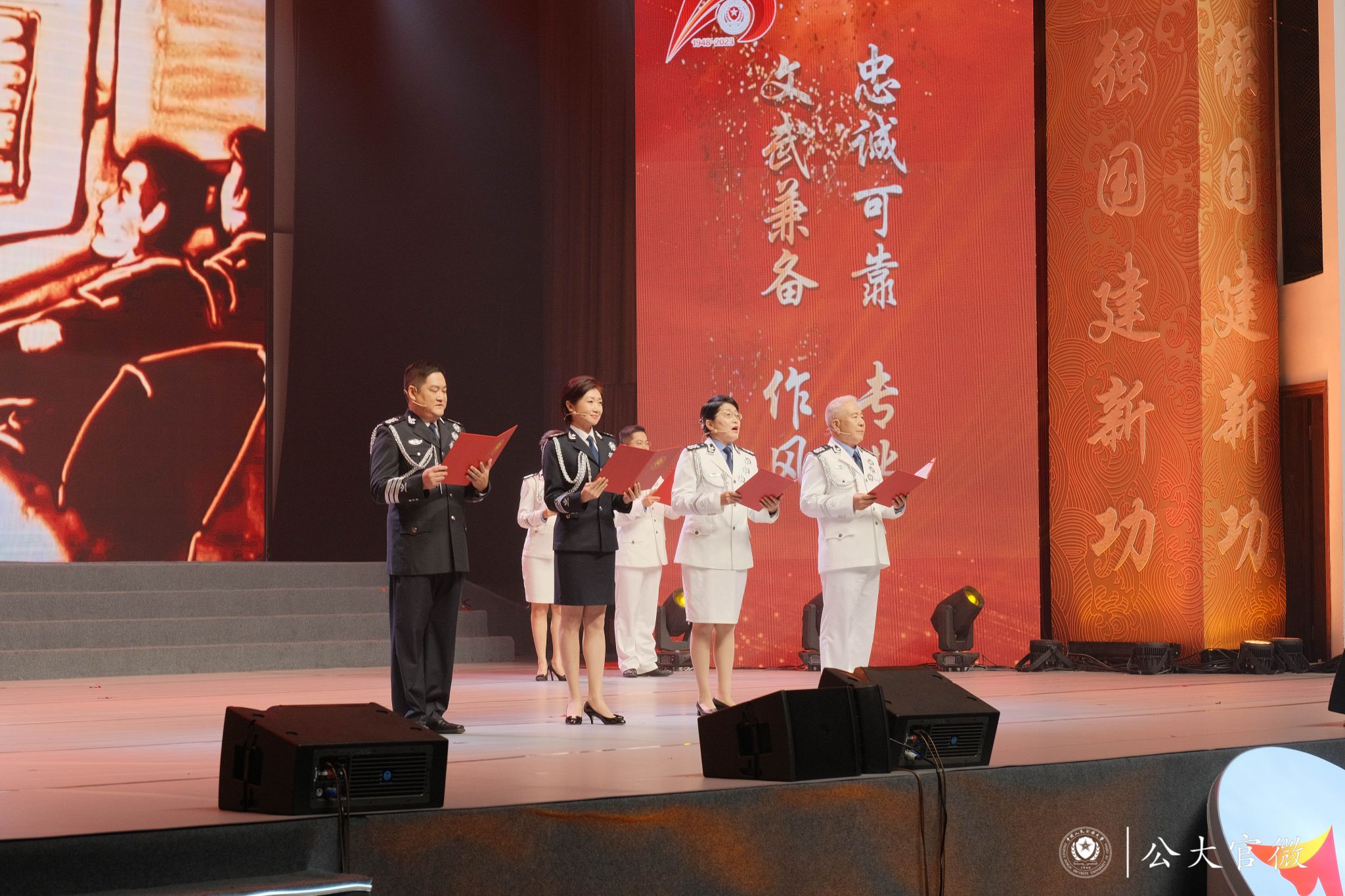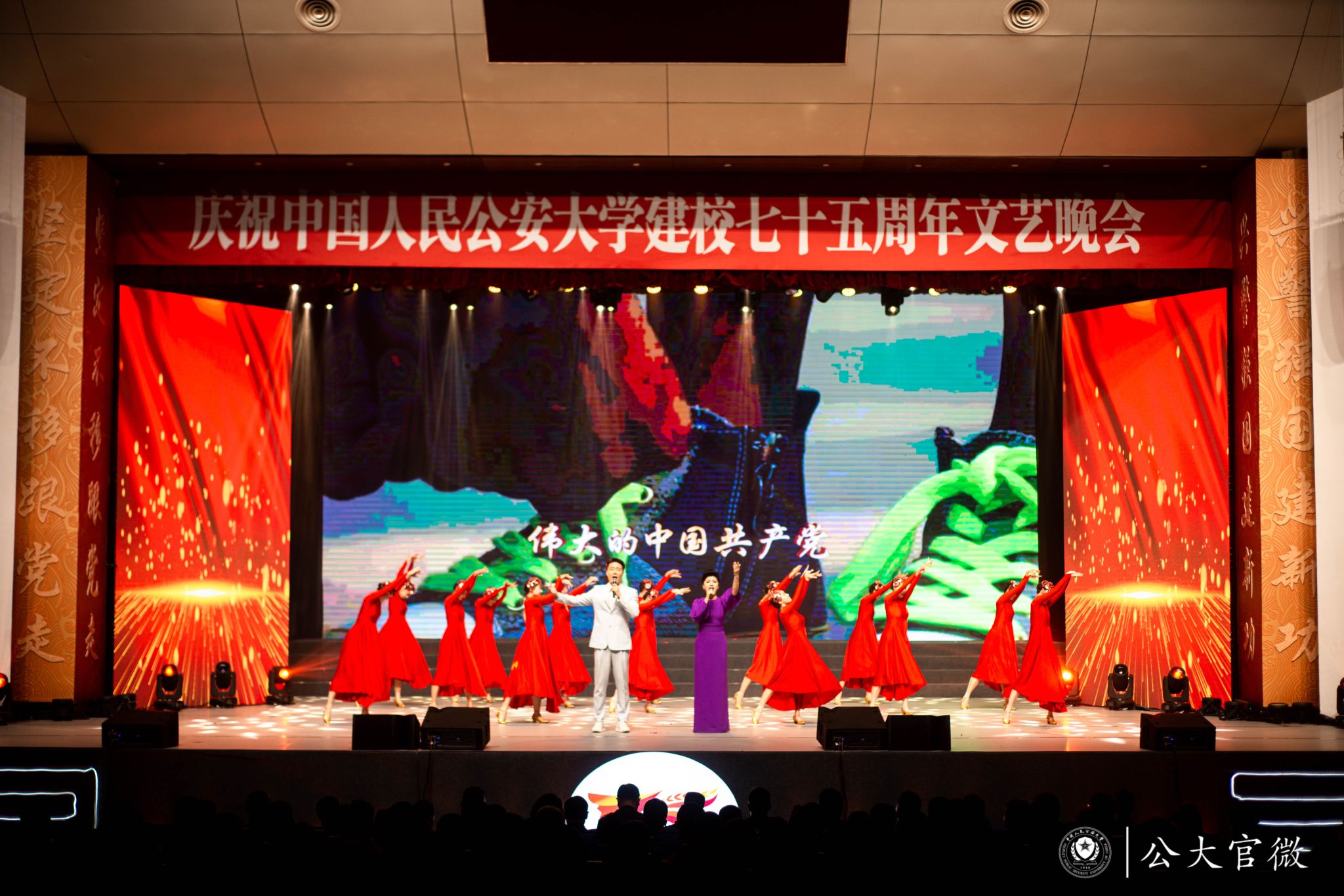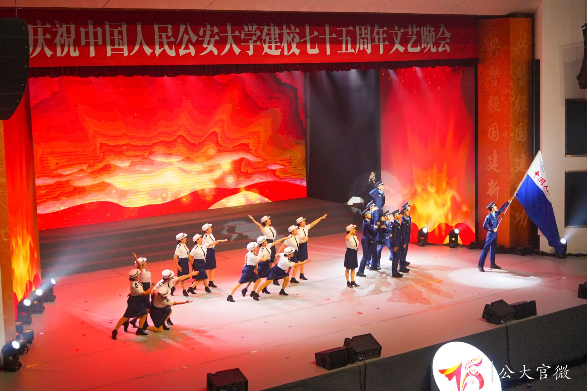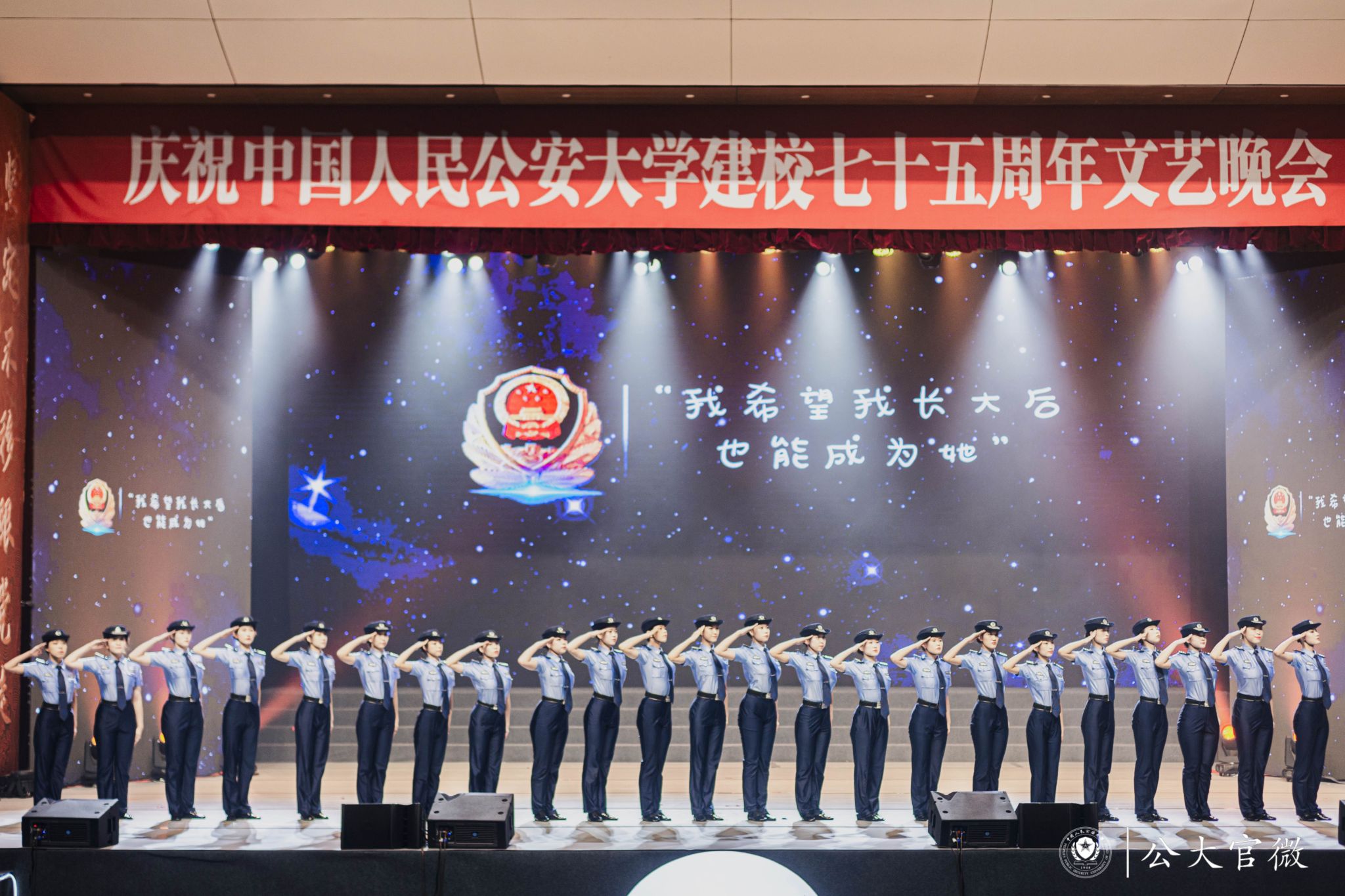 2023年10月12日是学校建校75周年纪念日。当晚,学校在木樨地校区礼堂隆重举办庆祝建校75周年文艺晚会,邀请来自全国32所兄弟公安院校、11个与学校签订合作共建协议的省级公安机关、澳门司法警察学校、学校合作共建和捐赠企业的有关负责人以及英雄模范校友代表、各界友好人士代表等与学校全体校领导和在校师生代表欢聚一堂,共同庆祝公安大学建校75周年。晚会以“坚定不移跟党走·兴警强国建新功”为主题,共分为“为党而生”“育警强国”“续写荣光”三大篇章,围绕着习近平总书记给kaiyun官网在读公安英烈子女回信的殷切嘱托,回顾了学校七十五年创建发展的光辉历程,展现了一代又一代公大人坚定不移听党话、跟党走的忠诚信念。