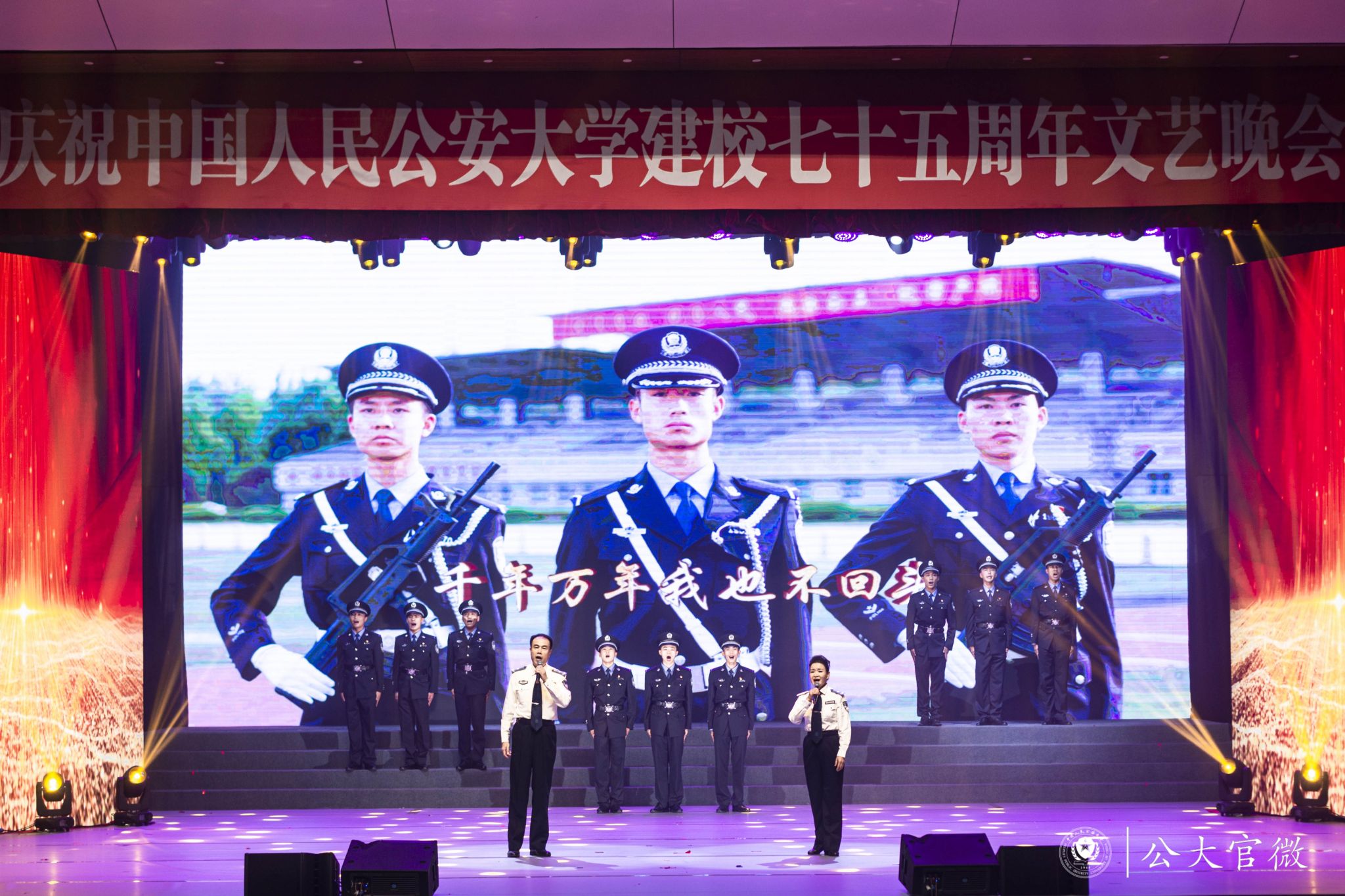 晚会在全场共同高唱《中国人民警察警歌》的激昂歌声中落下帷幕,台上激情的演绎与台下如潮的掌声交织在一起,汇聚成了一片欢乐的海洋,共同祝福公安大学七十五周年华诞,共同祝愿公安大学明天更美好。
