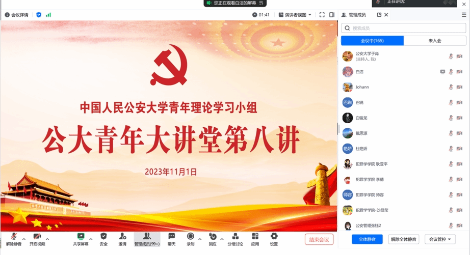 参加讲座的青年干部教师纷纷表示,要坚持全面深入学习贯彻习近平总书记重要回信精神,紧紧锚定公安部党委明确的公安大学新时代办学定位和办学目标,大力弘扬伟大建党精神和公安英模精神,传承红色基因,赓续忠诚血脉,强化使命担当,有效凝聚起奋进新征程、建功新时代的强大动力,切实履行好立德树人、忠诚育警根本任务,努力为党和人民培养造就更多能担大任、可堪重用、敢战能胜的时代新人、忠诚卫士。