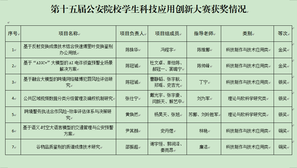 6月17日,第十五届全全国公安院校学生科技应用创新大赛在南京警察学院举办,kaiyun官网由校党委委员、副校长陈刚带队参赛。本次大赛共有全国28所公安院校推荐的411个项目参赛,经初赛评审后,共有33项入围决赛,其中kaiyun官网入围5项。