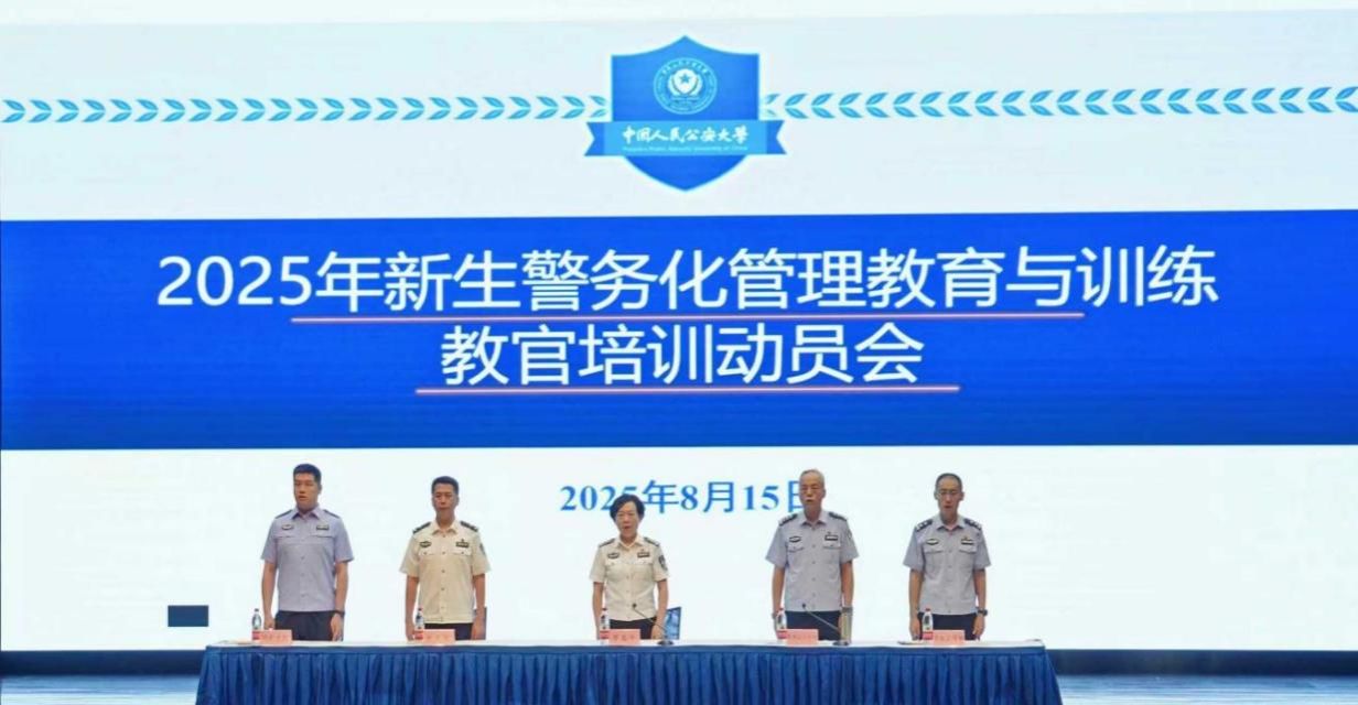8月15日,学校举行2025年新生警务化管理教育与训练教官培训动员会,校党委委员、副校长罗亚平出席会议,学工部、研究生院、警体学院、新生院等单位负责同志、干部教师代表以及511名学生教官参加会议。会后,罗亚平与新生院干部教师进行座谈。