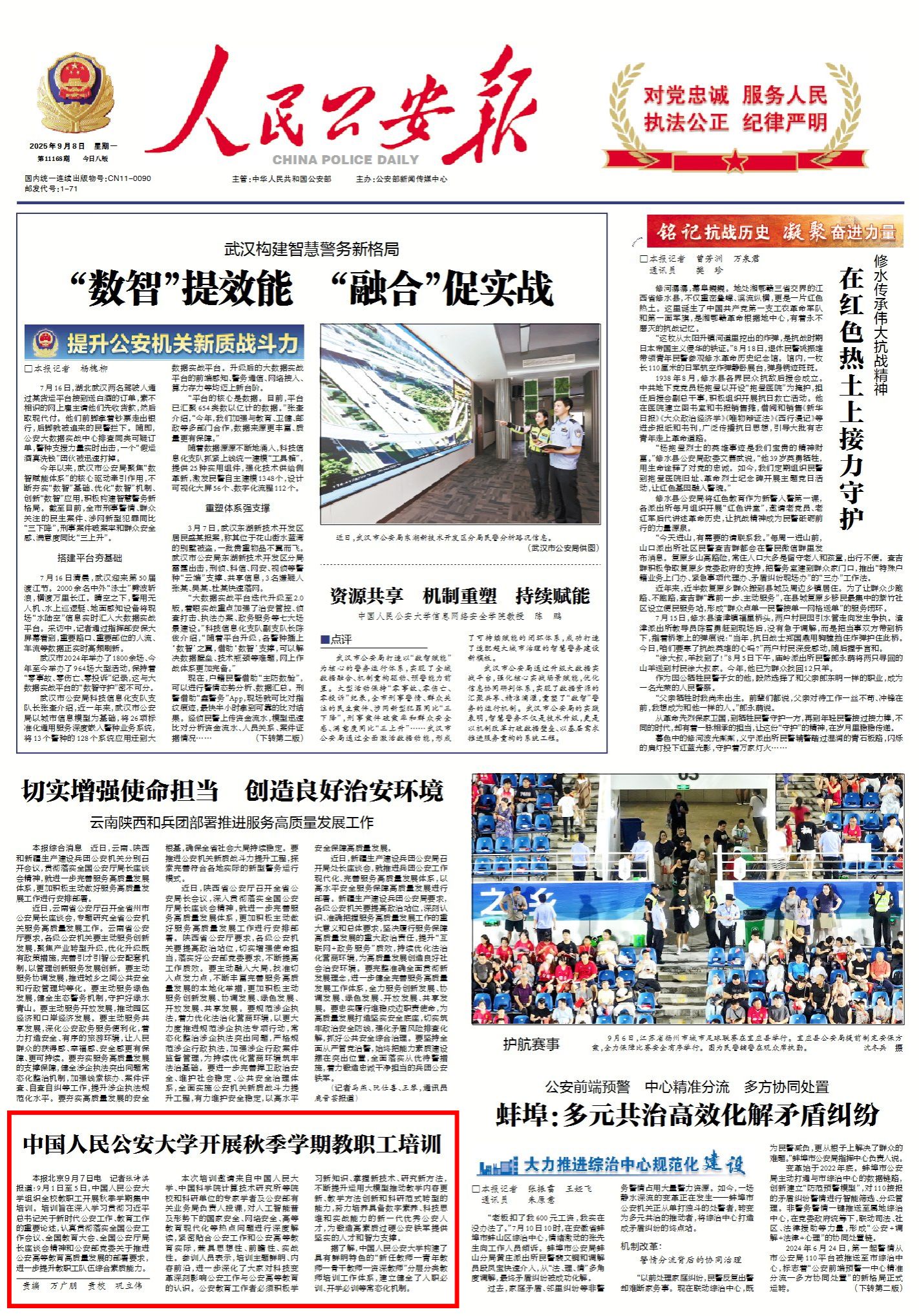 《人民公安报》9月8日第一版对培训活动进行了报道