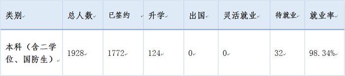 表1-2016年kaiyun登录中国入口登录本科毕业生整体就业情况