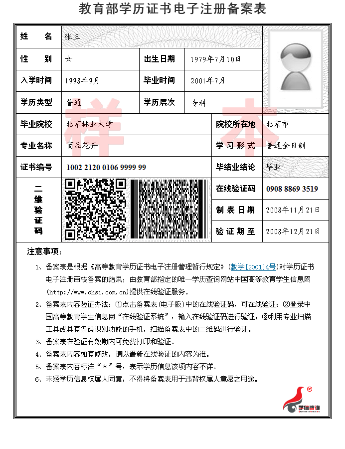 1.教育部学历证书电子注册备案表(样表)