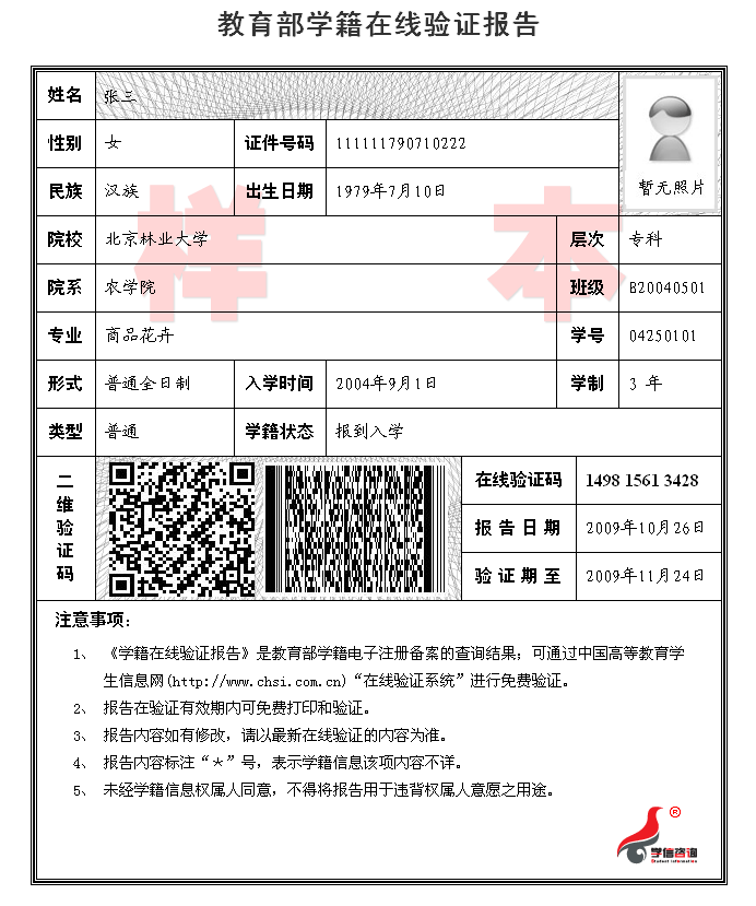 2.教育部学籍在线验证报告(样表)