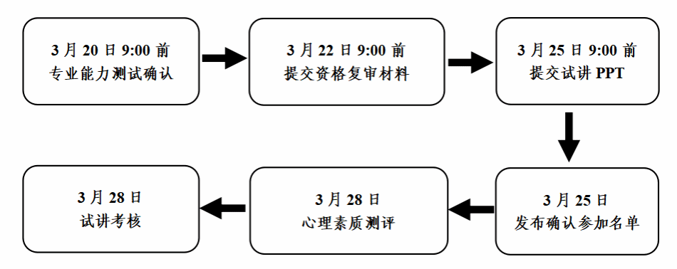 进行试讲考核,试讲考核由考生根据报考单位及岗位实际(kaiyun官网本科专业设置和研究生学位授权点情况可参见网站/xkzy/bks2.htm),自主选择一个专题,结合本人所学专业进行现场讲授(其中自我介绍不超过2分钟、现场讲授不超过10分钟,可准备PPT或者相关辅助教具,PPT于3月25日上午9:00前发至邮箱:renshichu@ppsuc.edu.cn,以“报考岗位+考生姓名+试讲PPT”格式命名)。
