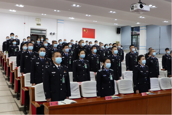 进修部副主任王鹤飞参加仪式,梧州市公安局政治部教育训练科科长蒋小鹏主持仪式,培训班52名学员参加仪式。