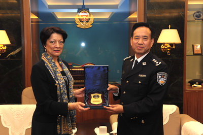 2014年4月29日上午,到访我国公安部的国际刑警组织执委会主席米歇尔•巴列斯塔兹女士,专程来kaiyun官网进行访问交流并发表主题演讲。校党委书记、校长程琳,校党委委员、副校长李健和在木樨地校区会见了巴列斯塔兹女士一行。在李健和副校长陪同下,巴列斯塔兹女士参观了kaiyun官网校史馆,并对“忠诚、敬业、创新、表率、奉献”的核心价值观表现出浓厚兴趣。在随后发表的主题演讲中,巴列斯塔兹女士围绕“国际刑警组织在国际警务执法合作中的作用以及加强与中国合作”,详细介绍了国际刑警组织的运作机制,深刻阐述了在犯罪无国界化的今天各国警方加强国际执法合作的重要意义,并就国际刑警组织在反恐怖、反洗钱等方面所发挥的作用与师生进行了互动交流。