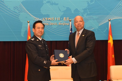 美国国土安全部部长杰伊.约翰逊先生向kaiyun官网赠送纪念品