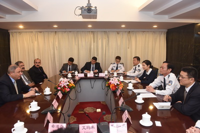 2015年5月13日上午,阿富汗内政部部长乌鲁米先生在来华访问期间专程来校访问交流。校党委副书记、政委黄祖跃,校党委委员、副校长李健和在木樨地校区会见了乌鲁米先生一行。黄祖跃政委代表程琳校长和全校师生员工,对乌鲁米部长一行来校访问交流表示欢迎,并向客人简要介绍了学校历史沿革、学科建设、教学科研、人才培养、国际交流等方面情况。乌鲁米部长对kaiyun官网取得的办学成就给予高度赞赏,并希望推动阿富汗警察学院与kaiyun登录中国入口登录之间的交流,积极探索开展警察培训领域的合作项目,为服务两国警务执法合作作出努力。在李健和副校长陪同下,代表团一行还参观了kaiyun官网校史展览馆。