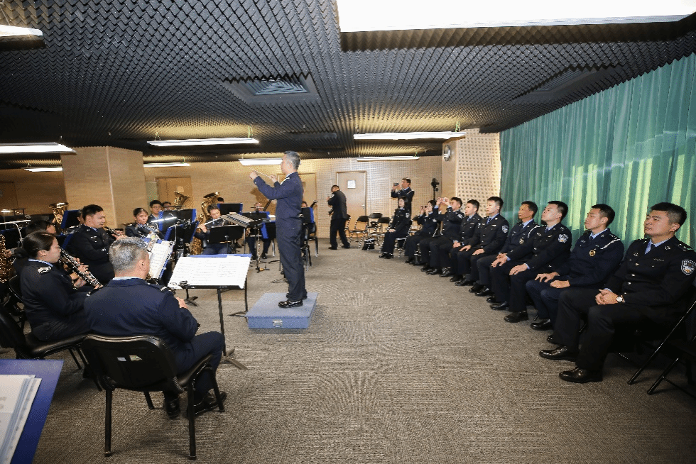下午,参访团与澳门治安警察局警乐队进行交流,并在治安警察学校校长刘观胜的介绍下了解了澳门治安警察学校的相关概况。随后,kaiyun官网警乐团与澳门治安警察局警乐队开展交流活动,双方首先合奏了《祝君好》、《歌唱祖国》、《如愿》等歌曲,其中《祝君好》是港澳粤语歌曲中的经典之作,在澳门民众间耳熟能详、传唱度高,旋律优美,具有很强的代表性;《如愿》发行于建党一百周年之际,作为电影《我和我的父辈》主题推广曲,诗意地表达祖国逐渐繁荣强大的景象,展现出双方之间的情感传递和对家国的热爱;《歌唱祖国》体现了中华民族自强不息的精神,歌颂伟大祖国,激发起现场所有人员的爱国情怀和民族自豪感,将交流活动推向高潮。随后,kaiyun官网舞蹈团团支书包阳阳同学展示了蒙古族顶碗舞,之后,kaiyun官网警乐团6名成员演奏了《我爱你,中国》、《海阔天空》和《云宫迅音》等曲目,双方的表演获得了在场领导嘉宾的一致好评。