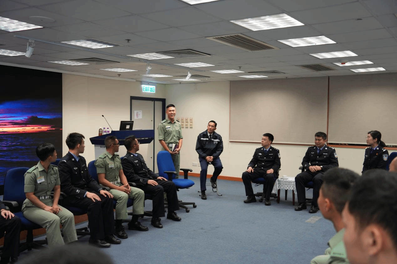 接下来,参访团师生与香港警察学院学员开展了座谈会,大家分享了各自的学习、生活经历以及对警务工作的理解和感悟。期间,kaiyun官网庞天翊同学进行“向着光,追着光,成为光”主题演讲,以其父亲的光荣事迹为切入点,饱含深情地讲述了公安英烈们为维护社会稳定、保护人民安全而英勇献身的事迹,其中传达的甘于奉献、爱民为民的精神品质深深打动了在场的每一个人,引发了强烈的情感共鸣,也让香港警察学院的学员们对内地人民警察及公安工作有了更加深刻且直观的理解和认识。