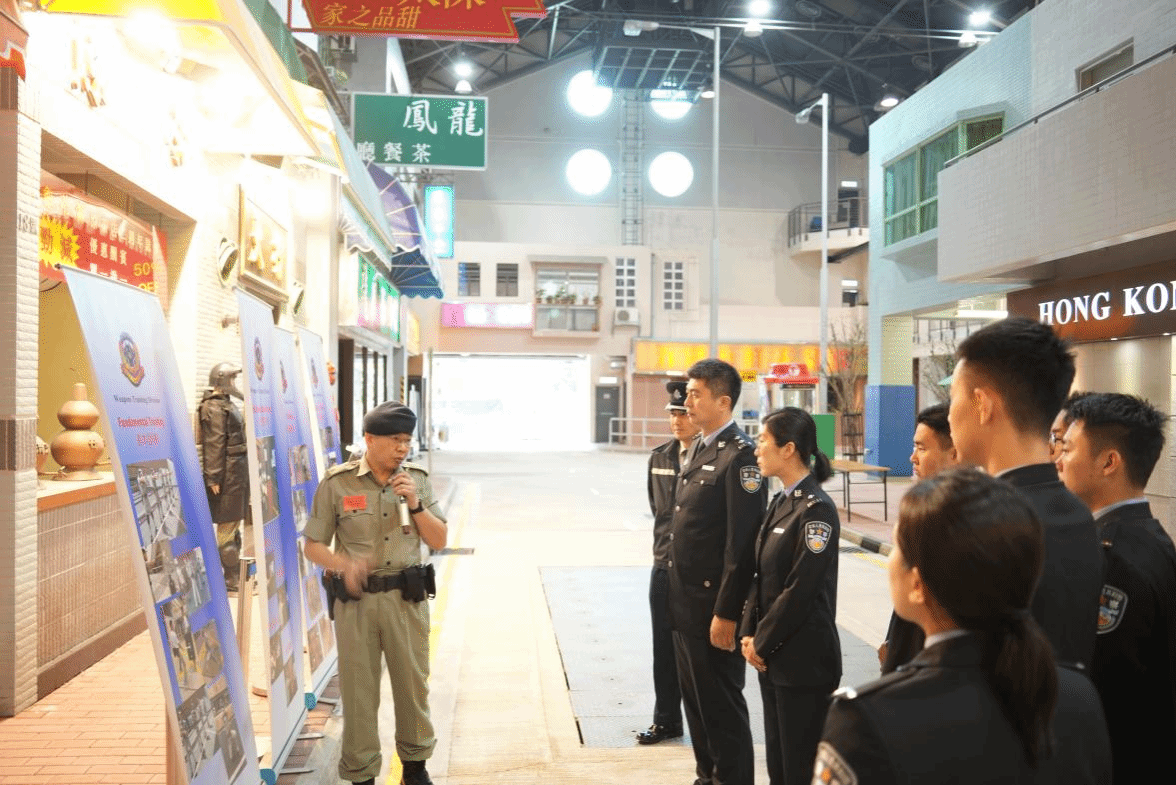 随后,在香港警察学院领导与教师的带领下,参访团参观了战术楼、宿舍楼等区域。其中,学校先进的训练设施和高度还原的模拟训练场体现了香港警察在实战训练方面的专业性和科学性,学员宿舍楼设施完备,学员内务干净整洁,参访学生们表示在日后的学习和训练中将脚踏实地、精益求精,以更高标准、更严要求锤炼过硬本领,严格遵守警务化管理的各项规定。