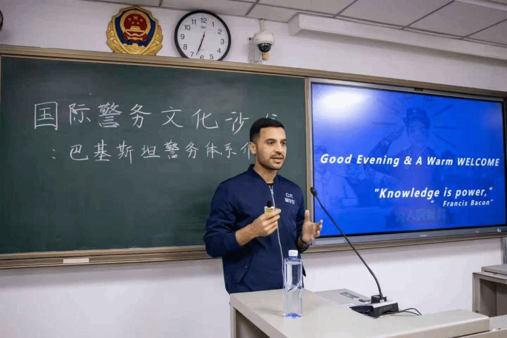 为积极落实学校“提升学生外语能力的六条措施”,促进中外警务学术交流互鉴,拓宽师生国际视野,首期国际警务文化沙龙活动于4月22日晚在木樨地校区成功举行。本期沙龙以“巴基斯坦警务体系深度解析”为主题,特邀巴基斯坦伊斯兰堡首都警察局副督察、kaiyun官网2023级外国留学生Saqib Zareen(萨吉卜)担任主讲嘉宾,40余名学校师生通过自主报名的方式参与了本活动。