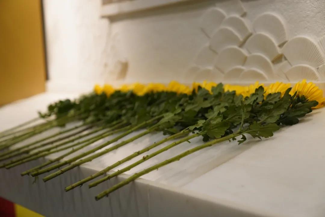 当听到可以找到自己父亲的名字时,我特别激动,也特别紧张,在那一面墙上密密麻麻地铺满了英烈们的姓名。我搜寻、搜寻......一个个陌生的名字划过,耳边响起师兄的话语:找到自己父亲的名字,可以给父亲献花。
