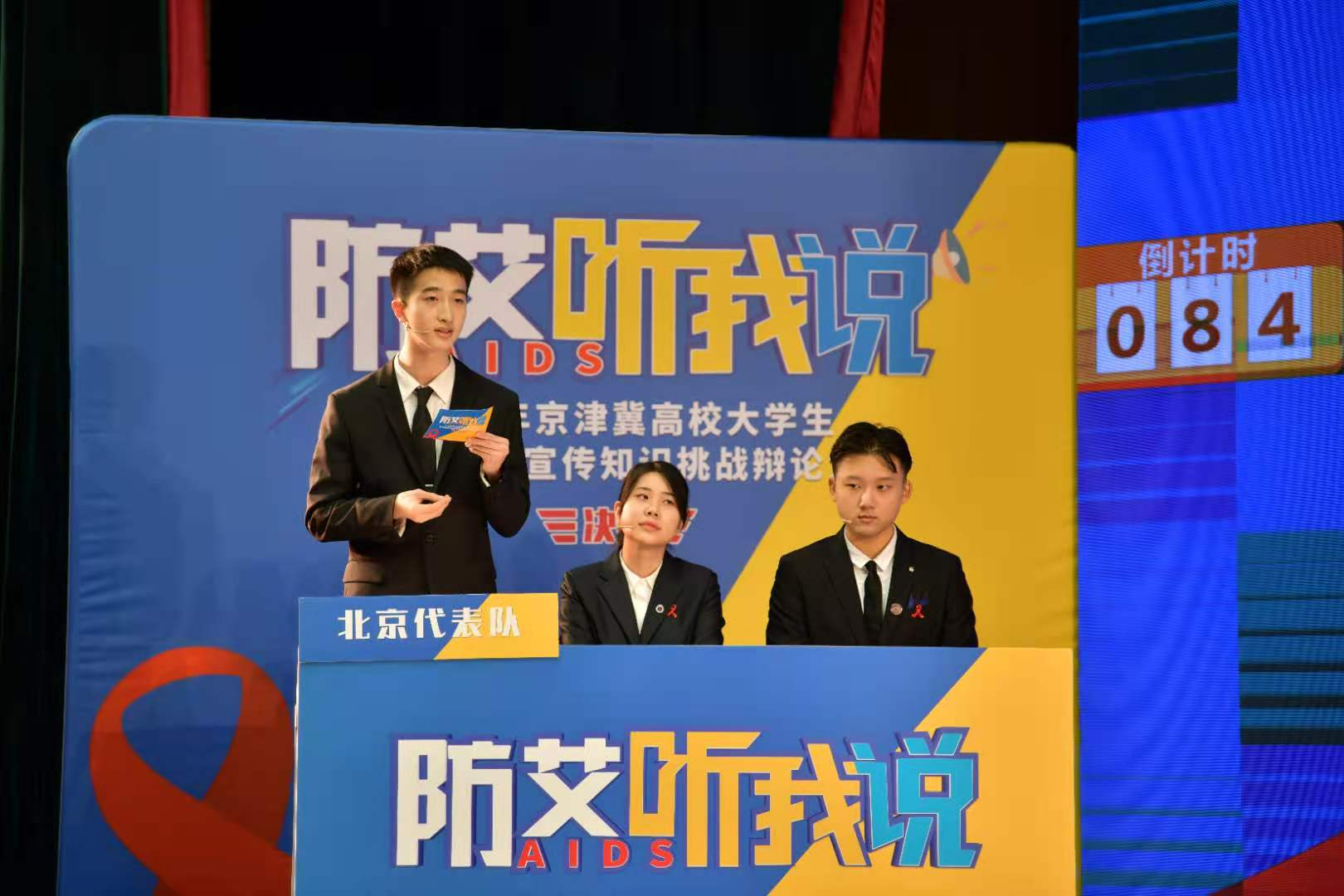 本次辩论赛采用京津冀三地远程连线的线上竞赛形式,由三地代表队展开激烈的辩论对决。大会的第一个环节是团队荣誉战。北京队就“大学生感染艾滋病公开身份弊大于利”和“大学生艾滋病防控教育是卫生部还是学校的责任”两个论题与河北队和天津队展开了激烈的辩论,期间场面一度白热化。