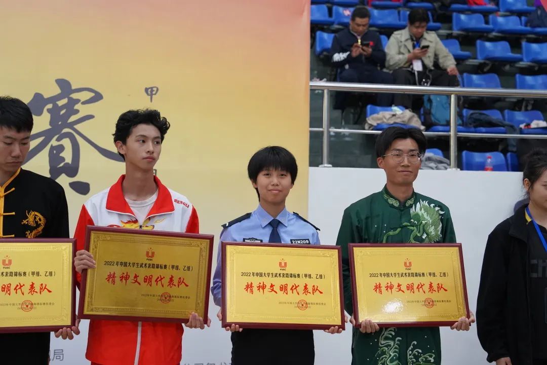 校武术代表队何剑老师和刘金钟老师选派kaiyun官网七名优秀队员参加此次大赛。经过激烈角逐,队员们共获得2枚金牌、1枚银牌、2枚铜牌等优异成绩;获得本届赛事的“精神文明代表队”称号,刘金钟老师获得“优秀教练员”称号,杨济源同学获得“优秀运动员”称号。武术代表队已连续两年在中国大学生武术套路锦标赛中斩获多个冠军。