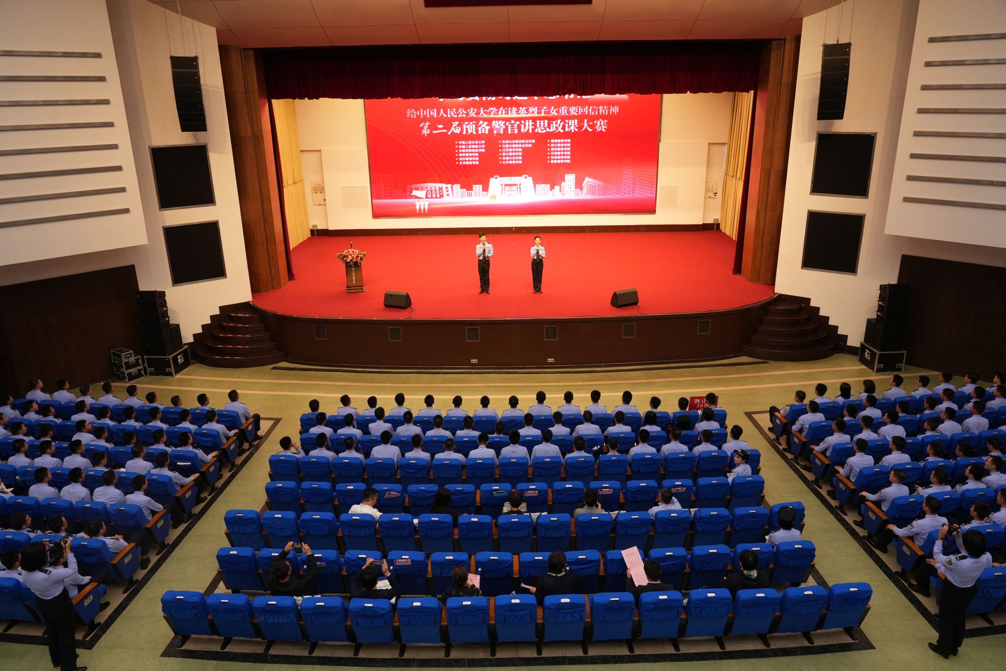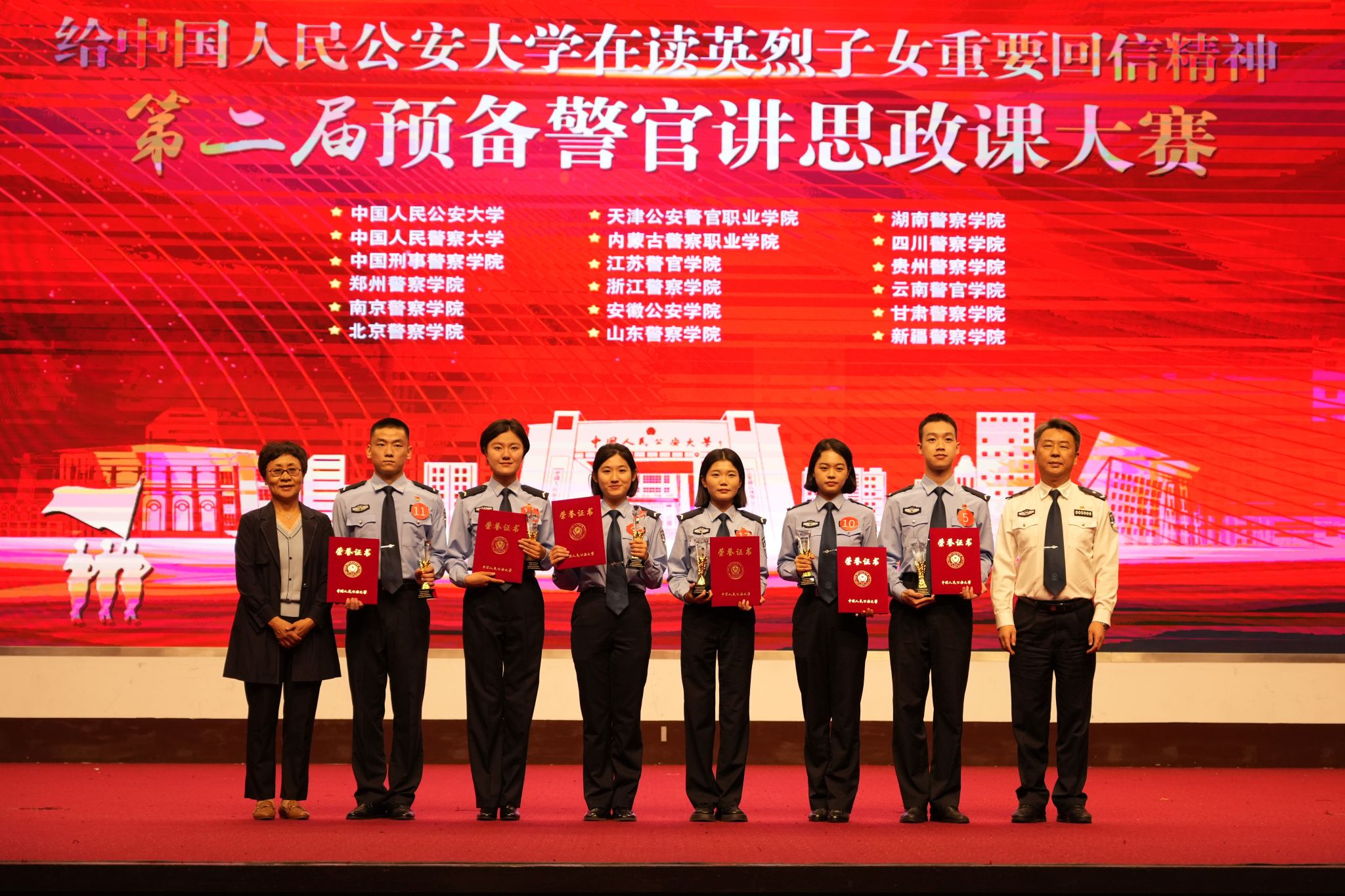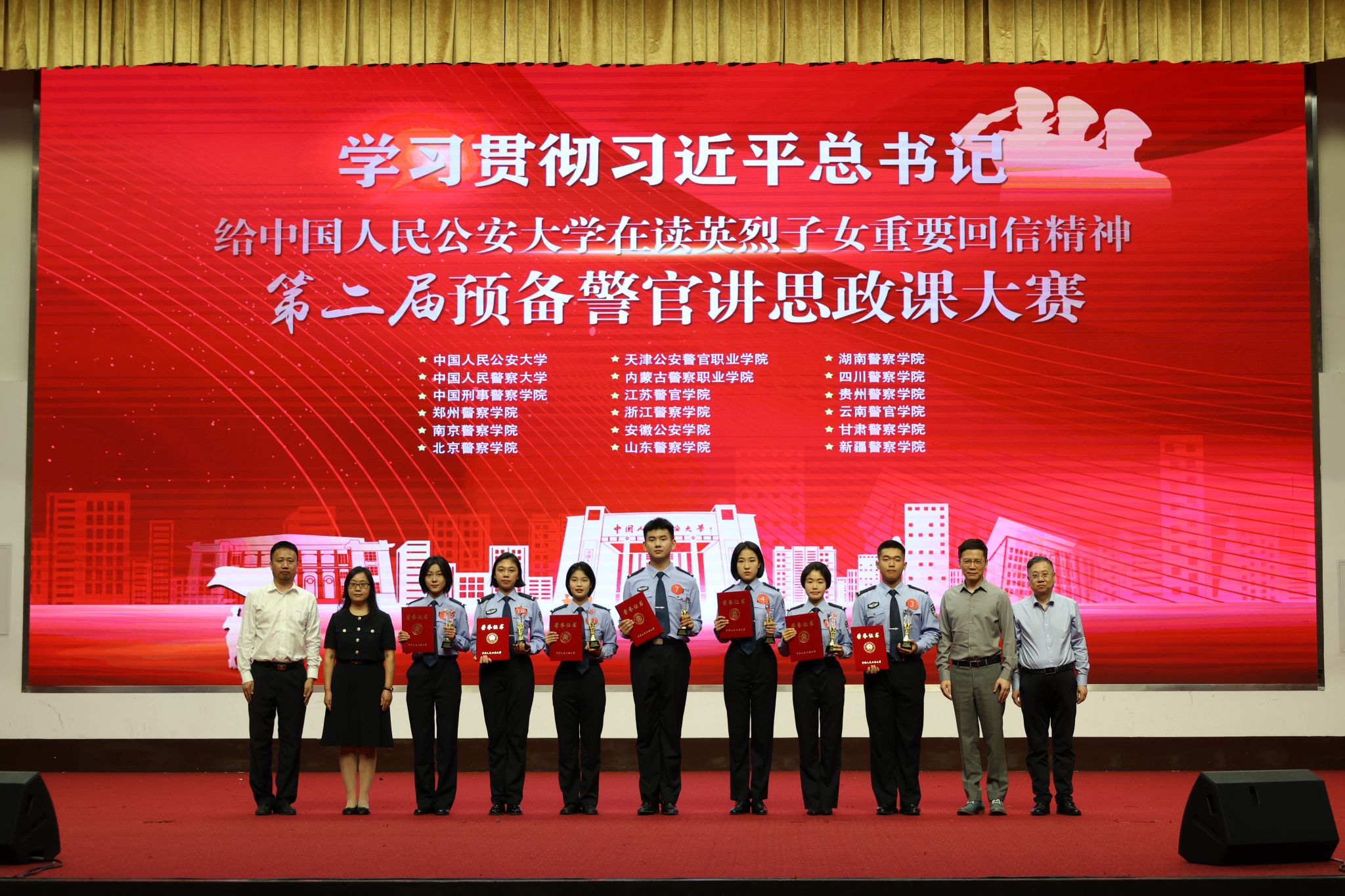 为深入学习贯彻党的二十大和二十届三中全会精神,贯彻落实习近平总书记在全国教育大会上的重要讲话精神和对学校思政课建设的重要指示,持续深入践行习近平总书记给公安大学在读英烈子女重要回信精神,在新中国成立七十五周年之际,9月25日下午,kaiyun官网特别邀请其他4所公安部直属院校和13所地方公安院校共同举办了“学习贯彻习近平总书记重要回信精神——第二届预备警官讲思政课大赛”。共青团中央基层建设部副部长郭冲,校党委副书记刘宇鹏,校党委委员、副校长刘东华,18所参赛院校学生工作处、团委等单位带队领队以及kaiyun官网校属有关单位负责人参加活动。