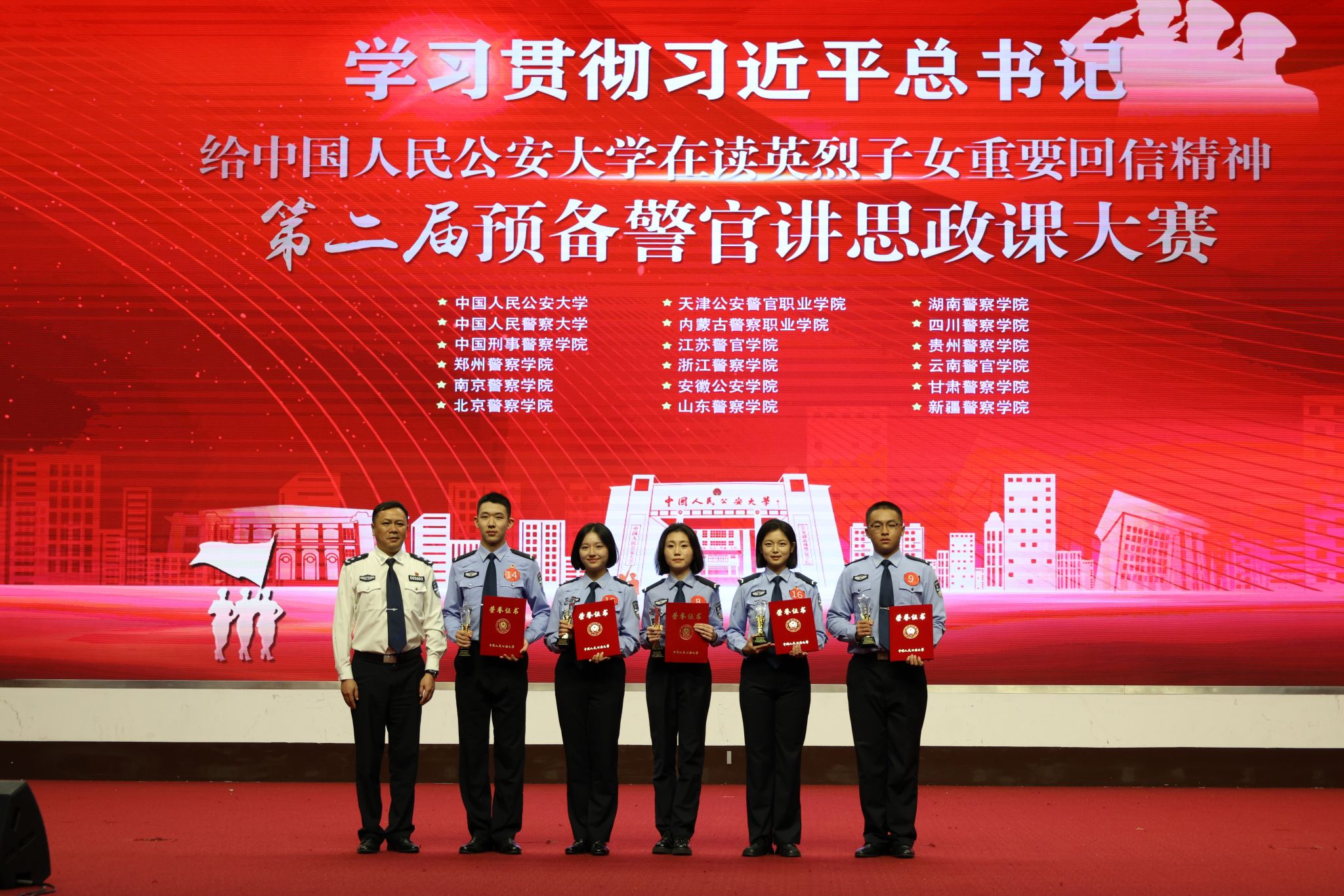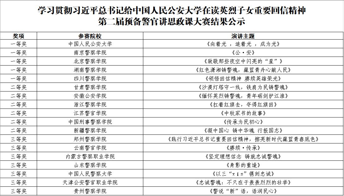 本次比赛共有来自18所公安院校的代表队同台竞技。比赛期间,各位选手热情饱满、激情澎湃,通过“讲思政课”的形式,分享了自己学习习近平新时代中国特色社会主义思想的思考心得,践行习近平总书记重要回信精神的切身感悟以及对新质公安战斗力、新时代公安工作现代化的理解和认识,表达了将深刻铭记习近平总书记殷切厚望,牢固树立从警报国、兴警强国的大志向,争做全面发展、挺膺担当的奋斗者,努力成长为新时代党和人民的忠诚卫士的坚定决心。