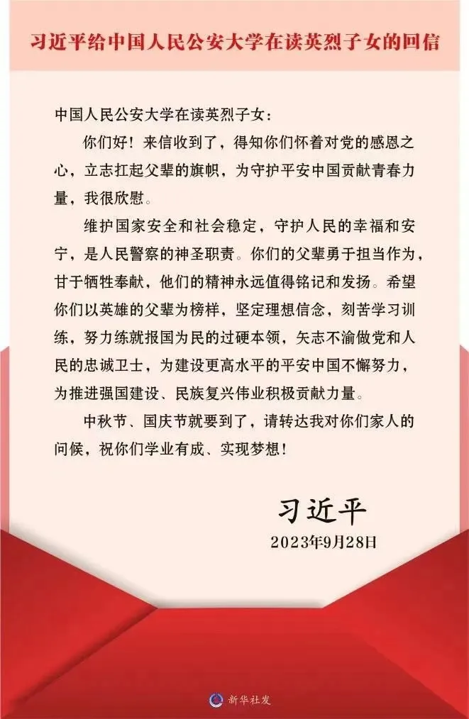 回信是惦念,也是嘱托;是鼓励,也是厚望。重要回信精神引导广大青年学子、全体公安干警坚定理想信念、胸怀“国之大者”、锤炼过硬本领,肯于苦干实干,以实干实绩回报习近平总书记的关怀厚爱和殷切期望。