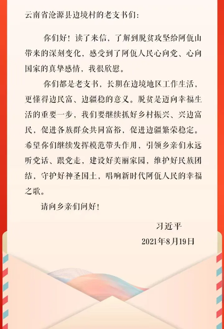 习近平给云南省沧源县边境村的老支书们的回信