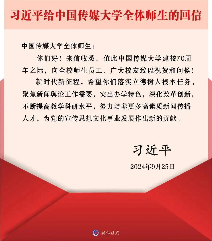 习近平给中国传媒大学全体师生的回信