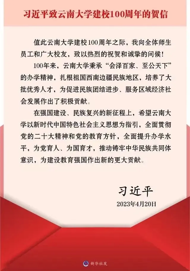 习近平致云南大学建校100周年的贺信