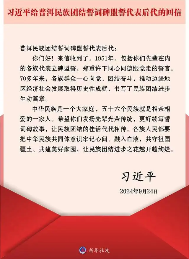 习近平给普洱民族团结誓词碑盟誓代表后代的回信