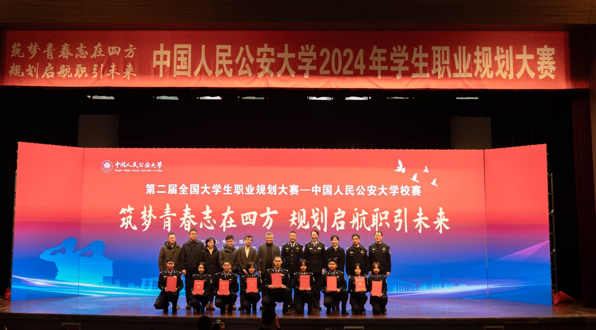 本届大赛以“筑梦青春志在四方,规划启航职引未来”为主题,分设“本科生成长赛道”“本科生就业赛道”和“研究生就业赛道”,共吸引480余名学生报名参赛,9名学生晋级决赛。决赛中,参赛选手围绕学校人才培养目标,立足行业现状和社会发展潜力,深入阐述了对目标职业的认知,并结合自身优势与不足,制定了切实可行的职业规划,表达了学习践行习近平总书记给学校在读英烈子女重要回信精神、矢志不渝做党和人民忠诚卫士的坚定决心。经过激烈角逐,研究生院何昭毅、国家安全学院王彦喆和法学院王瀚琳等3名同学获得一等奖;研究生院赵春翔、窦文涛,涉外警务学院刘婧靓,治安学院林安祺,犯罪学学院任然、国家安全学院张尧君等6名同学获得二等奖;卢怡等9名同学获得三等奖;孙卓等17名同学获得优秀奖。