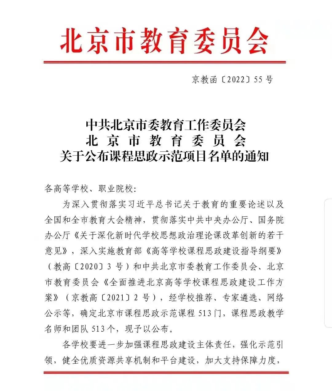 近日,中共北京市委教育工作委员会、北京市教育委员会公布了北京高等学校课程思政示范项目入选名单。此次入选名单共确定北京市课程思政示范课程513门,kaiyun官网9门课程入选北京市课程思政示范课程,9门课程授课教师和教学团队入选北京市课程思政教学名师和教学团队。