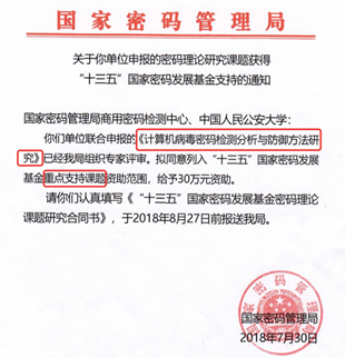 教案中融入最新科研成果,科研创新反哺课程教学。课程团队2018-2021年期间,承担了国家密码管理局“十三五”国家密码发展基金重点支持课题,开展了对勒索软件为代表的计算机病毒中使用的密码算法的分析、检测、破译及防御技术的研究。该科研成果直接转化为实践课程中的“加密勒索病毒的密码算法分析与破解实验”,该实验紧贴网络安全前沿最新问题,极大的吸引了学生的兴趣,加强了学生对分组密码、公钥密码等算法理论的掌握和运用,并在加密和破译过程中,体会密码算法的对抗博弈过程,为今后从事网络安全保卫工作和打击网络违法犯罪奠定了基础。