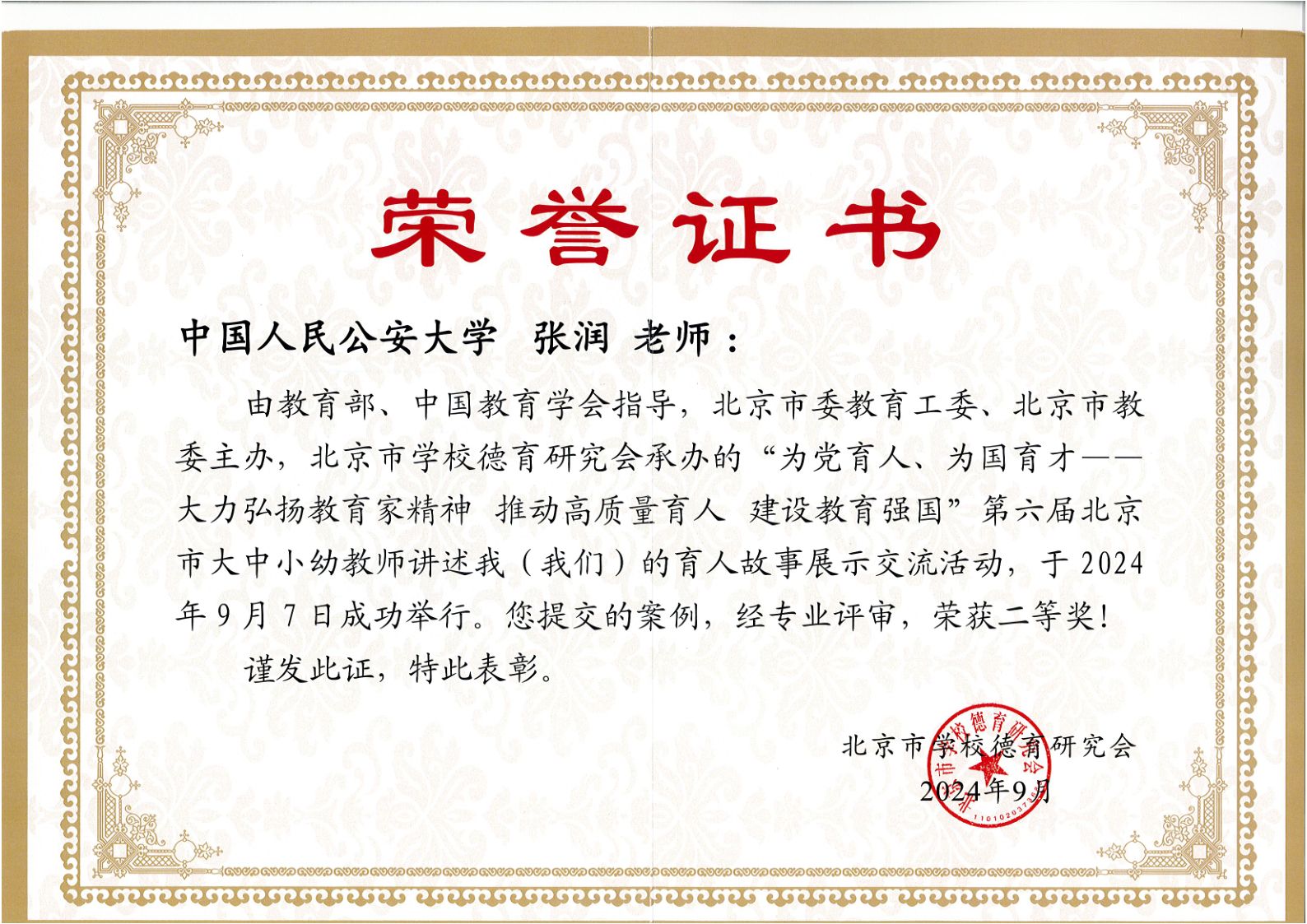 北京市大中小幼教师讲述育人故事展示交流活动已连续举办六届,是北京市师德师风建设的重要品牌之一,也是北京市加强教师思想政治工作的重要平台,更是展示首都广大教师育人风采的靓丽舞台。长期以来,学校党委高度重视教师思想政治教育和师德师风建设工作,大力弘扬教育家精神,教育引导广大教师始终牢记共产党员、人民警察、人民教师“三重身份”,坚守为党育人、为国育才、为警铸剑初心使命,着力锻造政治、业务“双过硬”的教师队伍。学校教师多次参加北京市大中小幼教师讲述育人故事展示交流活动并获奖。