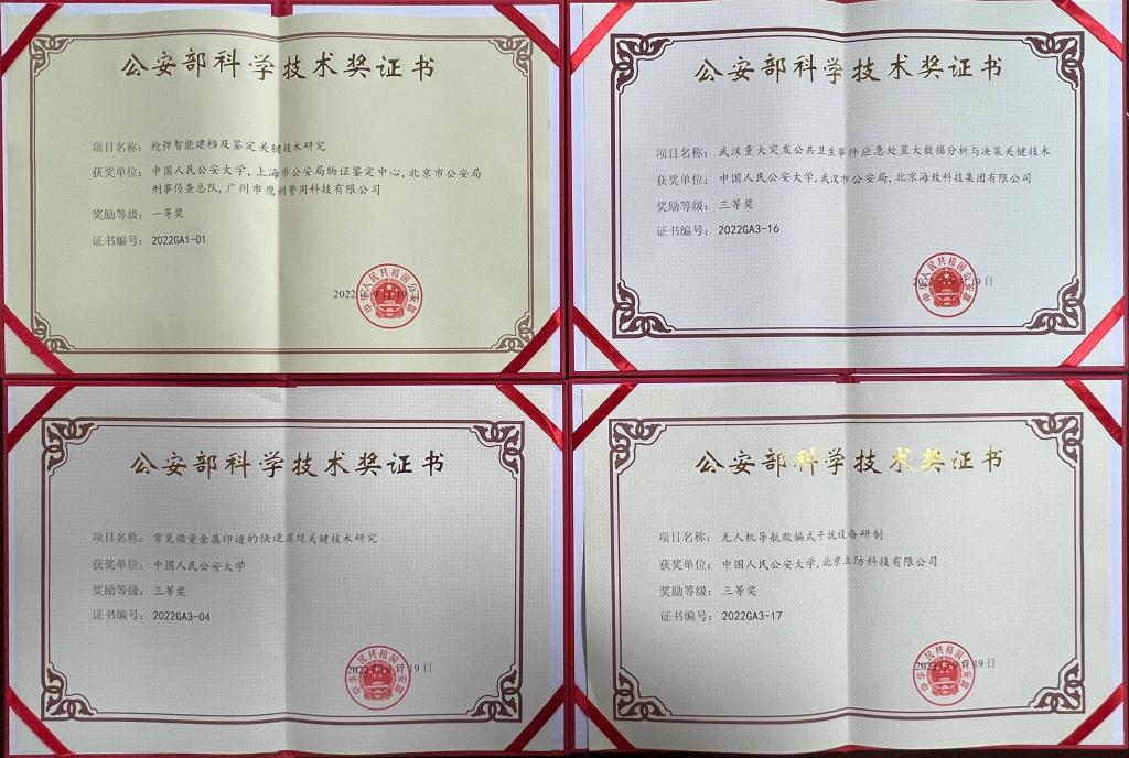 近日,公安部印发了《关于2022年度公安部科学技术奖获奖项目的通报》(公科信[2022]909号),根据《公安部科学技术奖励办法》,经评审、公示并报部领导批准,2022年度共有48个项目获得公安部科学技术奖。kaiyun官网向公安部推荐了5个项目,其中4项获得奖励:罗亚平教授等完成的《枪弹智能建档及鉴定关键技术研究》获得一等奖,杨瑞琴教授等完成的《常见微量金属印迹的快速显现关键技术研究》、陈鹏副教授等完成的《武汉重大突发公共卫生事件应急处置大数据分析与决策关键技术及应用》、孙永生副教授等完成的《无人机导航欺骗式干扰设备研制》均获得三等奖,实现了近几年来kaiyun官网在公安部科学技术奖励方面数量与质量上的新突破。