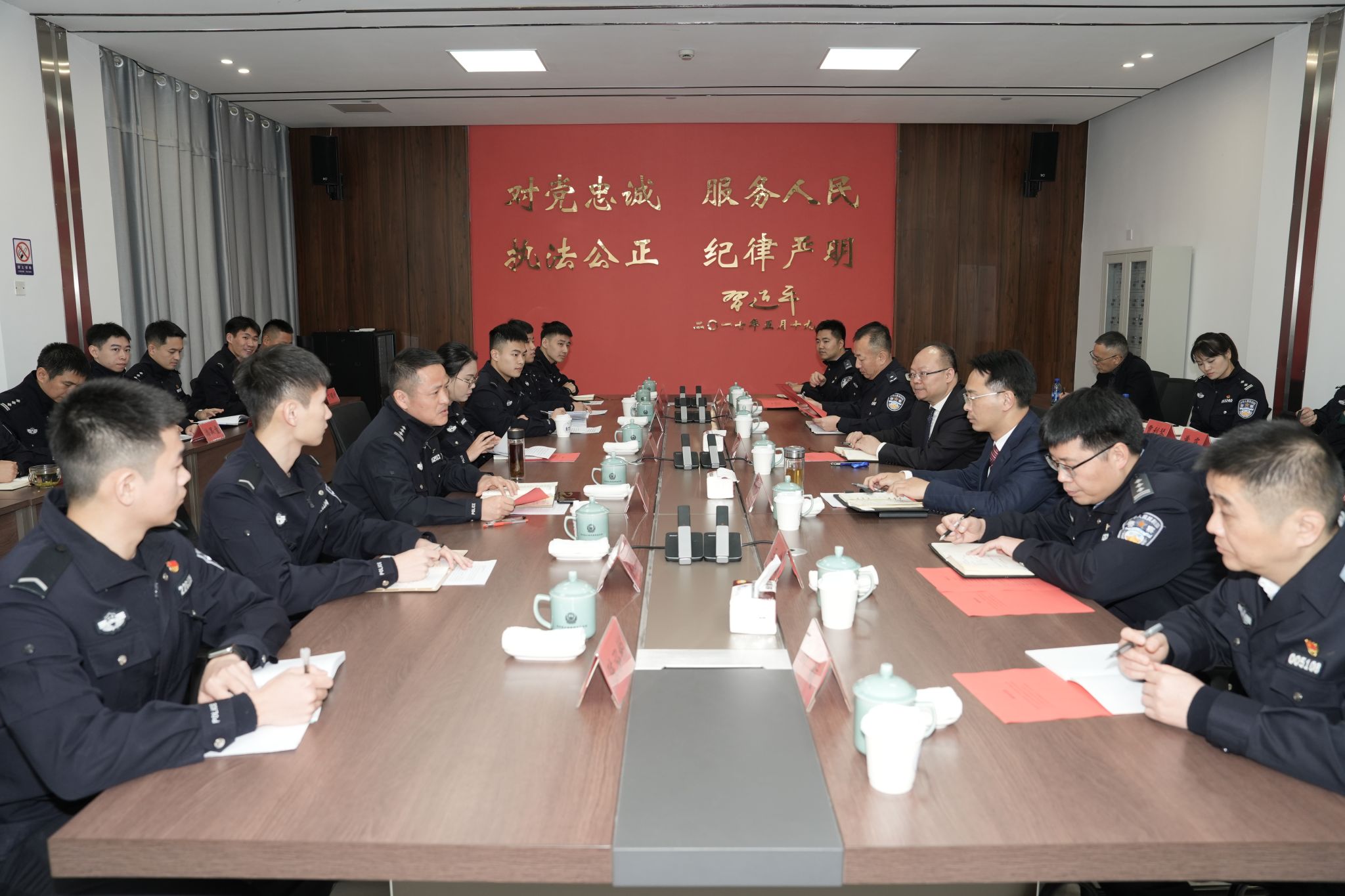 为深入学习贯彻习近平总书记在全国教育大会上的重要讲话精神和给学校在读英烈子女重要回信精神,认真贯彻落实公安部党委关于加快推进公安高等教育高质量发展的部署要求,全面践行“教学研练战”深度融合办学模式,12月12日至14日,校党委副书记、校长王轶带队赴浙江省公安厅、杭州市公安局、湖州市公安局和浙江警察学院调研。调研期间,浙江省副省长、省政府党组成员,厅党委书记、厅长、督察长杨青玖会见王轶校长一行。双方表示,长期以来,浙江省各级公安机关与公安大学在引领警务模式改革创新、推动公安工作现代化实践中保持着密切交流、建立了深厚友谊,在人才培养、教育培训、科学研究、实战练兵等方面合作紧密、成果丰硕。下一步,双方将紧紧围绕提升公安机关新质战斗力、服务保障“国之大者”使命任务,开展更高水平、更深层次、更加务实的合作共建,特别是立足浙江作为中央支持建设的高质量发展共同富裕示范区、对外开放强省、涉外贸易大省的实际,重点开展海外利益保护、生态文明安全等相关主题研究,力争产出一批具有引领性和影响力的标志性成果,更好服务国家安全战略大局。