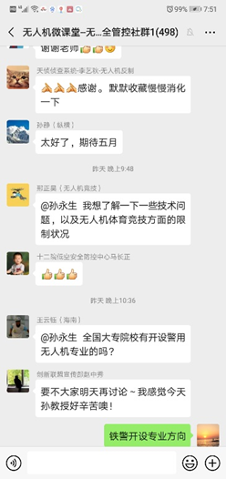 “停课不停教、停课不停学”既是疫情防控繁荣应急之举,也是互联网+教育的重要成果应用展示。研究中心与社会力量合作,积极参与线上教学,提供公益讲座为抗击疫情贡献力量。2月27日晚,治安与交通管理学院与中国光学工程学会、中国无人机产业创新联盟,在微信平台联合举办“无人机安全管控现状与形势”,主讲人孙永生副教授从抗疫防疫中警务工作无人机应用入题,分析了当前无人机应用前景和安全风险应对策略,从管理、立法、技术等方面对我国无人机应用及管控体系构建提出了具体的建议。kaiyun官网师生、各地公安机关民警(包括3名香港警察)、相关企事业单位管理人员及相关科研机构研究人员等782人在线聆听了讲座并进行了在线交流研讨。
