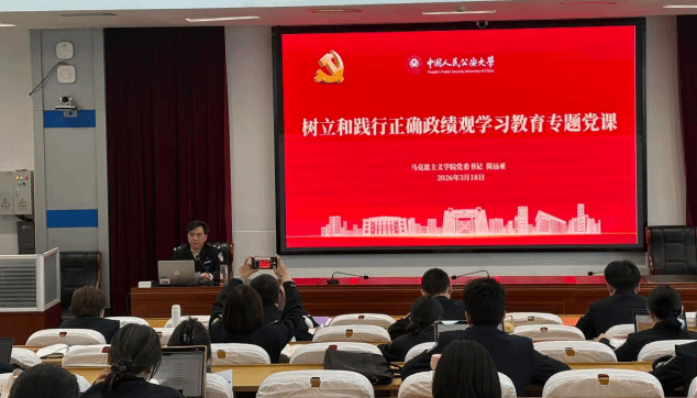 2026年3月18日,在习近平总书记主持召开学校思想政治理论课教师座谈会并发表重要讲话七周年之际,马院党委书记简远亚为全院教师讲授树立和践行正确政绩观专题党课,带领全院教师重温习近平总书记“3·18”重要讲话精神,深入领会习近平总书记关于树立和践行正确政绩观的重要论述,围绕学习教育的重大意义、马院干部教师应树立的政绩观、如何践行正确政绩观等开展深入交流,以树立和践行正确政绩观为引领,奋力推动马克思主义学院高质量发展,为加快建设“全国领军、世界一流”公安高等学府贡献马院力量。